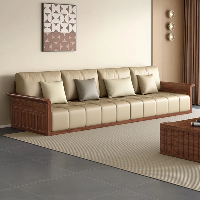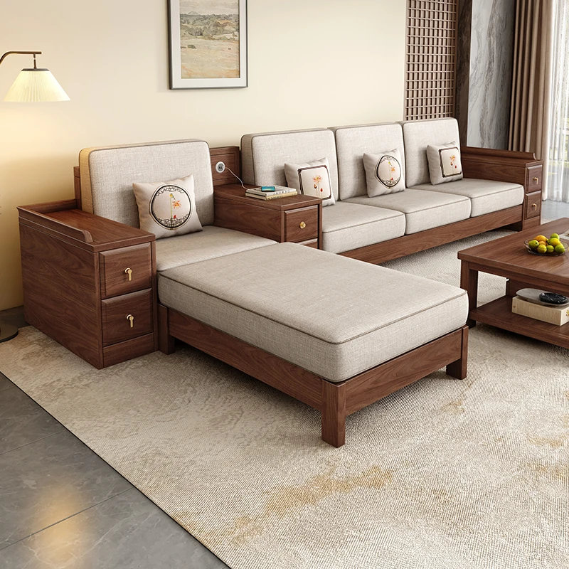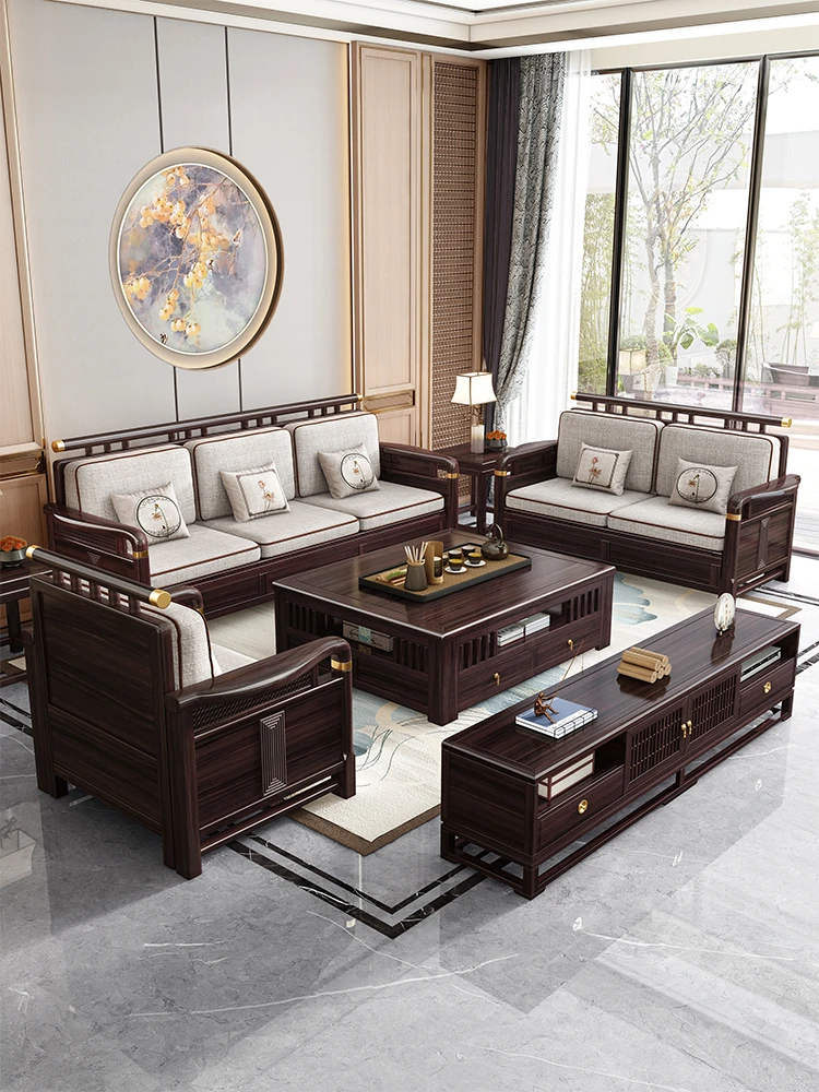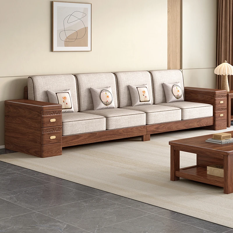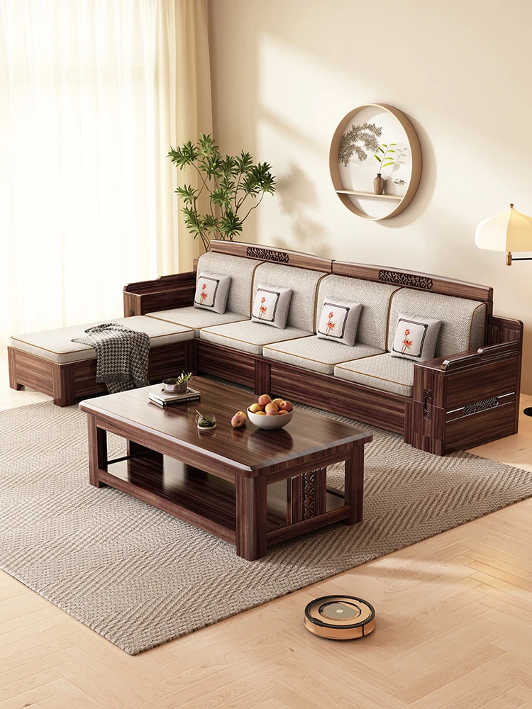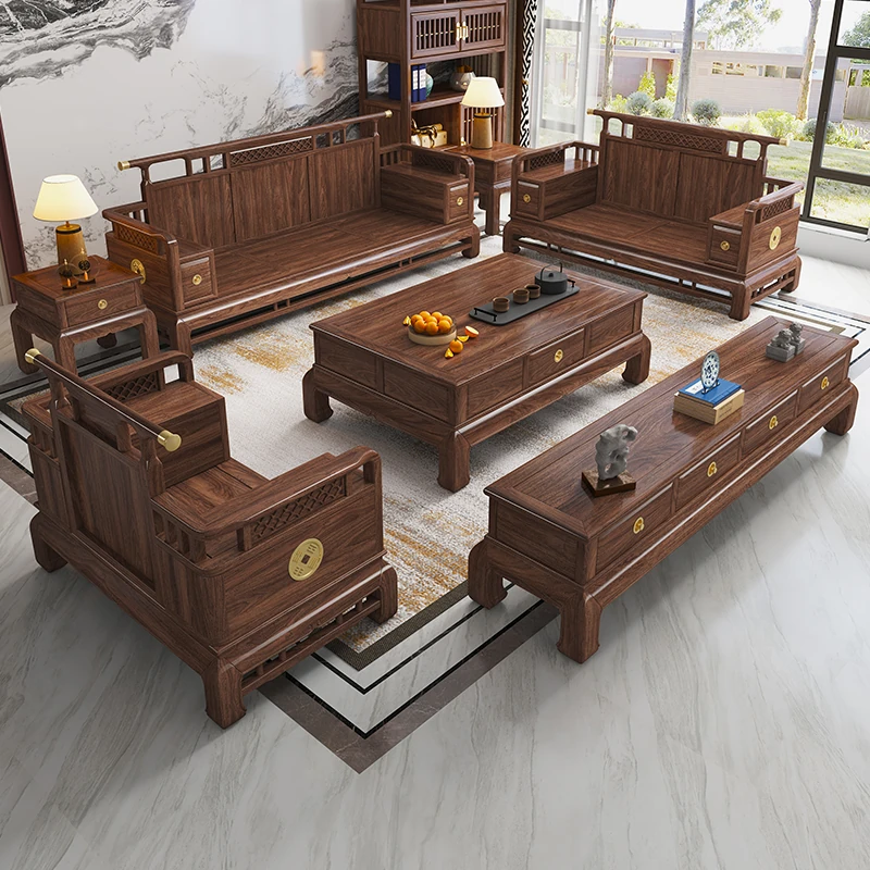 新中式高級ウォールナット無垢材ソファセット - エレガントで広々としたリビングルームにぴったりの上質な家具!大人数にも対応可能なデザインで、家族や友人とのくつろぎの時間を演出します。