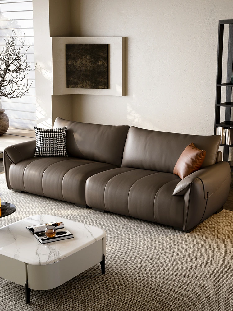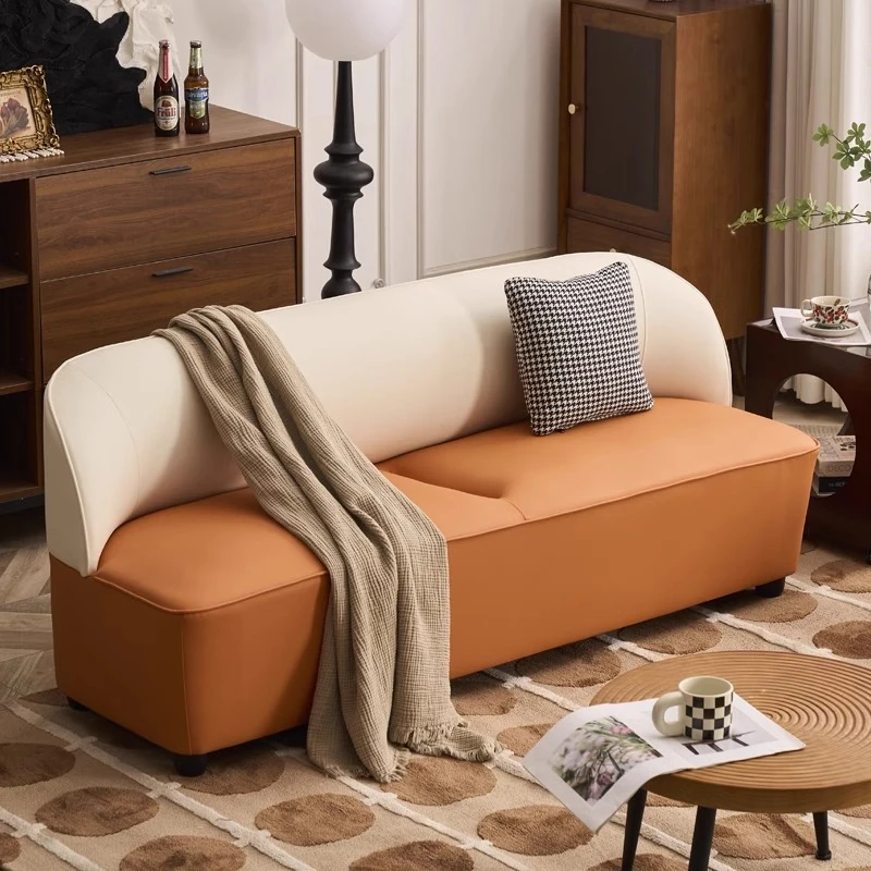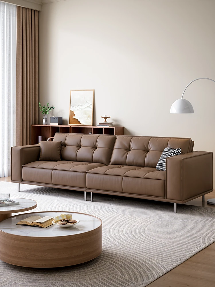 2025年新作!イタリアンライトラグジュアリー直排ソファ – レトロスタイルのリビングにぴったり!小型住宅向けのシンプルでエレガントなプフ型本革ソファ。快適さとスタイルを兼ね備えた一品!