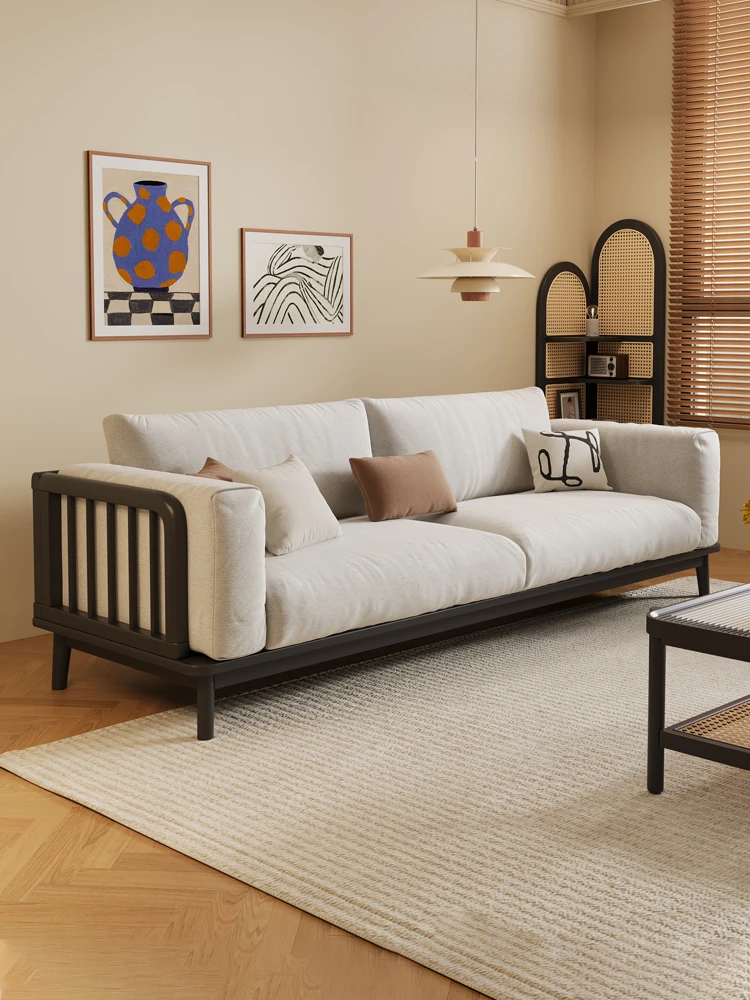 【香港送料無料】新中式スタイルの無垢材ソファベッド|リビングにぴったりなコンパクトデザイン|モダンでシンプルな小型家具セット