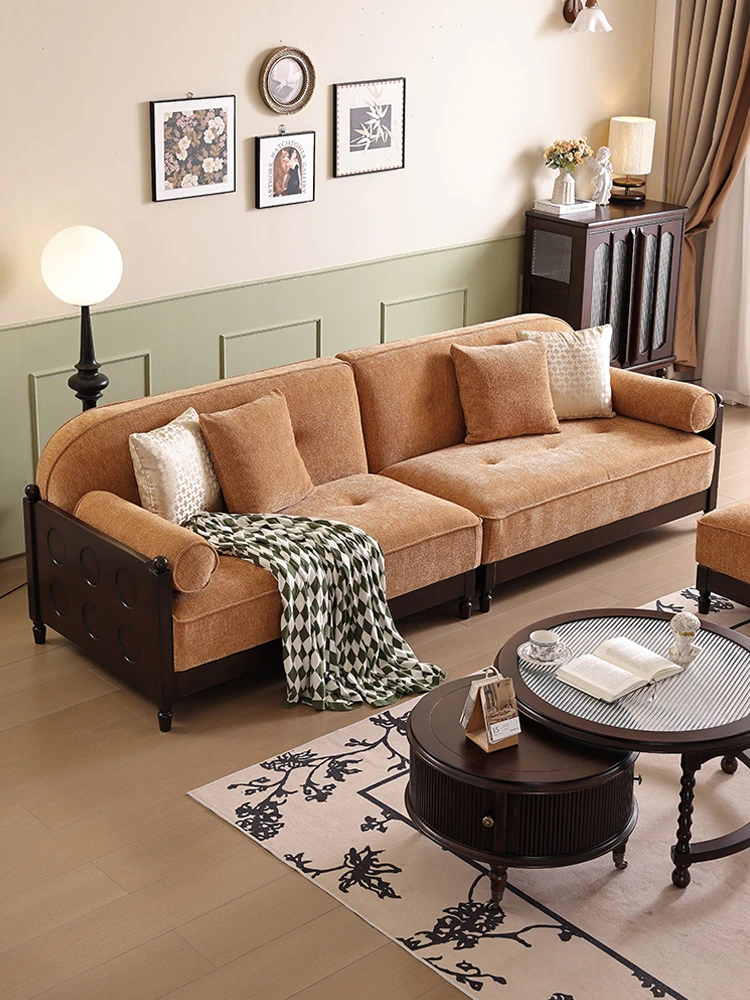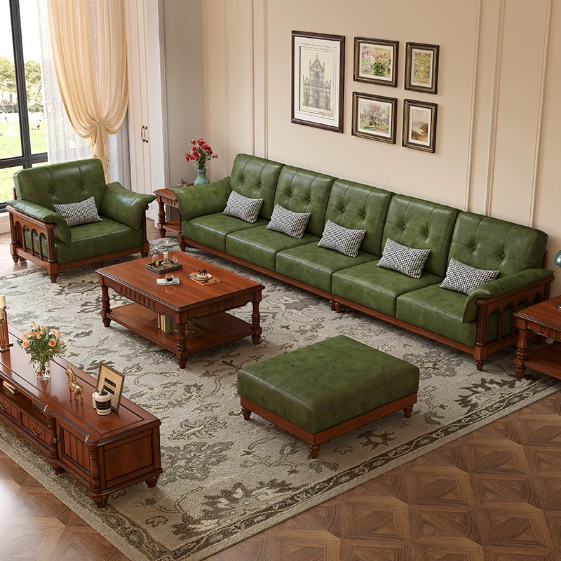 アメリカンレトロ皮革製実木ソファ|リビングに最適!コンボ型コーナーソファ|欧州スタイルで大中小様々な部屋にフィットするアート家具