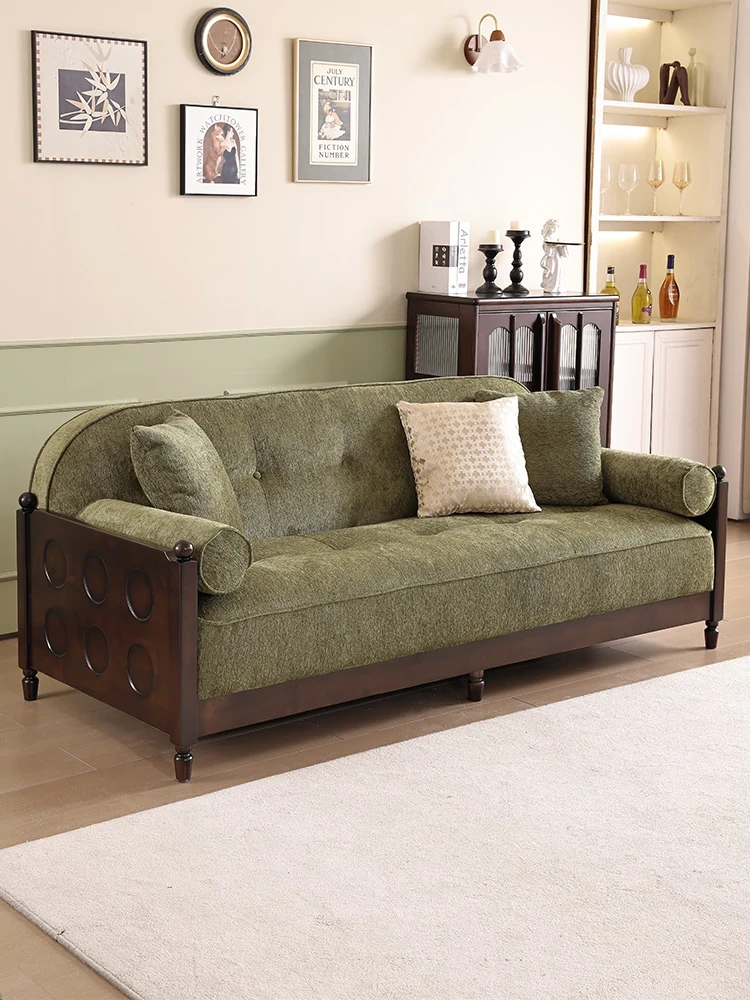 フレンチスタイルの無垢材ソファ|アメリカンカントリー風|小さなリビングにぴったりな布張り3人掛けソファ|オーク材使用のヴィンテージ風別荘ソファ|おしゃれで快適な空間を演出します!