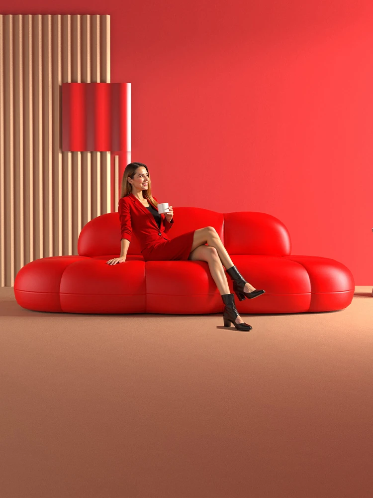 雲のようなソファ 美容院や服装店に最適!リラックスできる待機スペースを演出するデザイナー創作のユニークなレザーソファ。おしゃれな雰囲気でお客様をお迎えします!