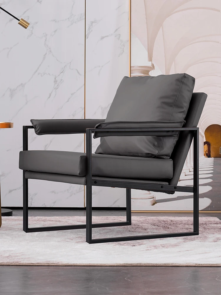 北欧スタイルの書斎用ソファチェア|侘寂の美を感じるアイアンチェア|インダストリアルデザインのリラックスチェア|シンプルで洗練されたバルコニー用リクライニングチェア