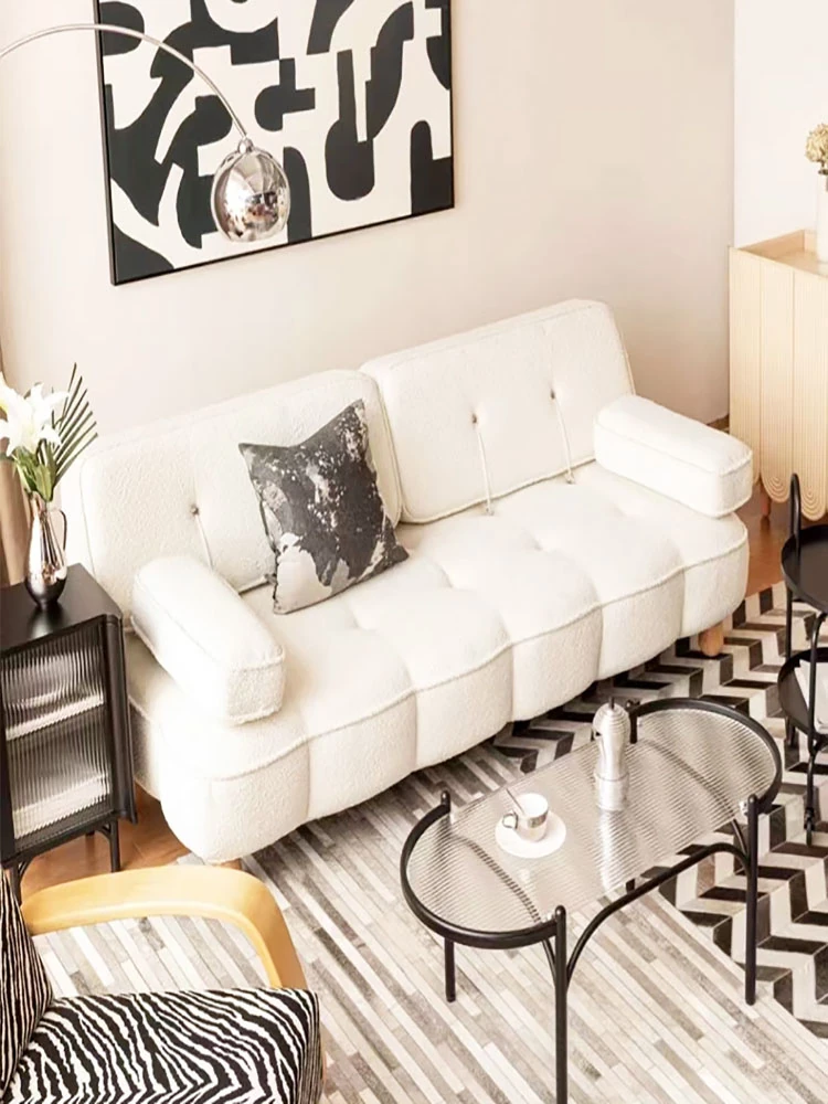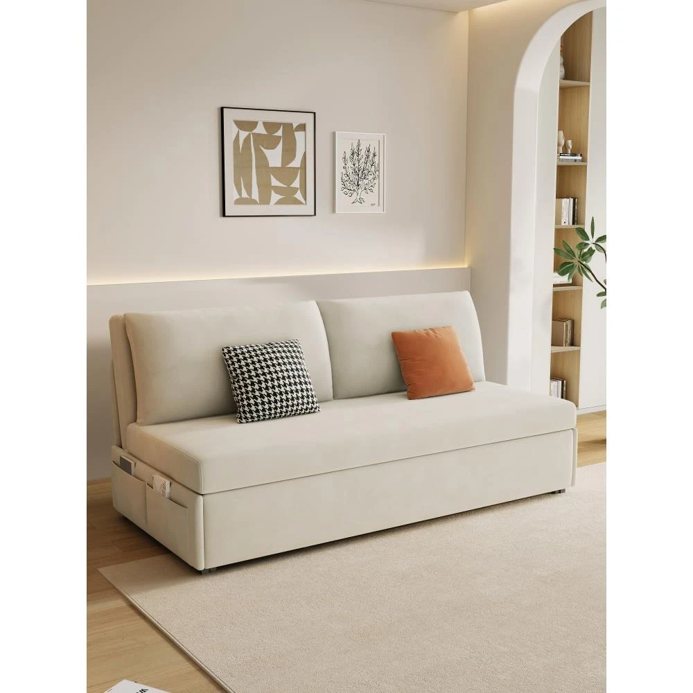 【香港送料無料】2024年新作!ふわふわ雲朵デザインの布製ソファベッド、折り畳み式で小さなリビングにも最適なフレンチスタイル3人掛けソファ!快適さとおしゃれを両立したアイテム!