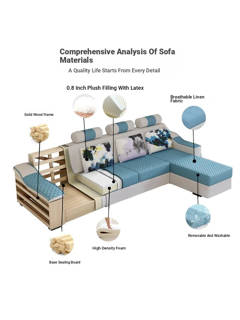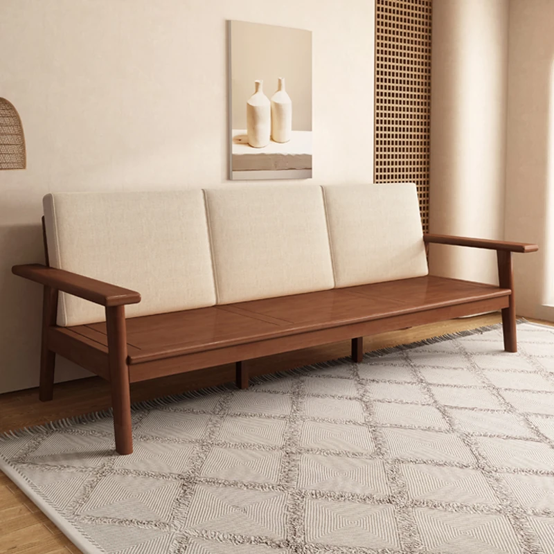 Versatile Solid Wood Sofa for Small Apartments - New Chinese Style, Vintage Design, Three-Seat Fabric Sofa for Year-Round Comfort in Living Rooms