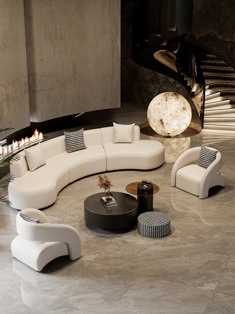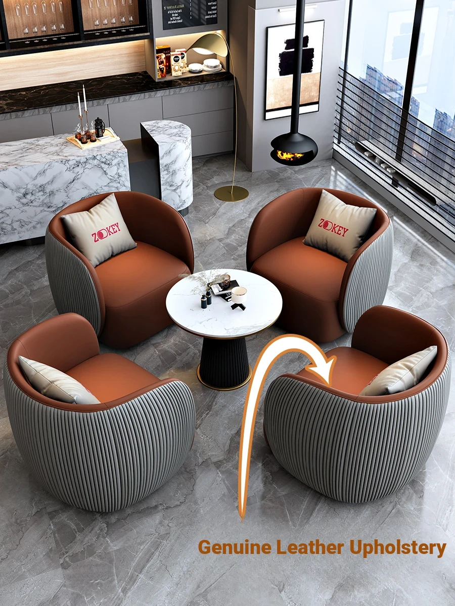 Nordic Leather Reception Sofa - Modern Lounge Furniture for Beauty Salons, Hotels, Sales Offices, and Relaxation Areas - Stylish and Comfortable Seating for Conversations and Meetings