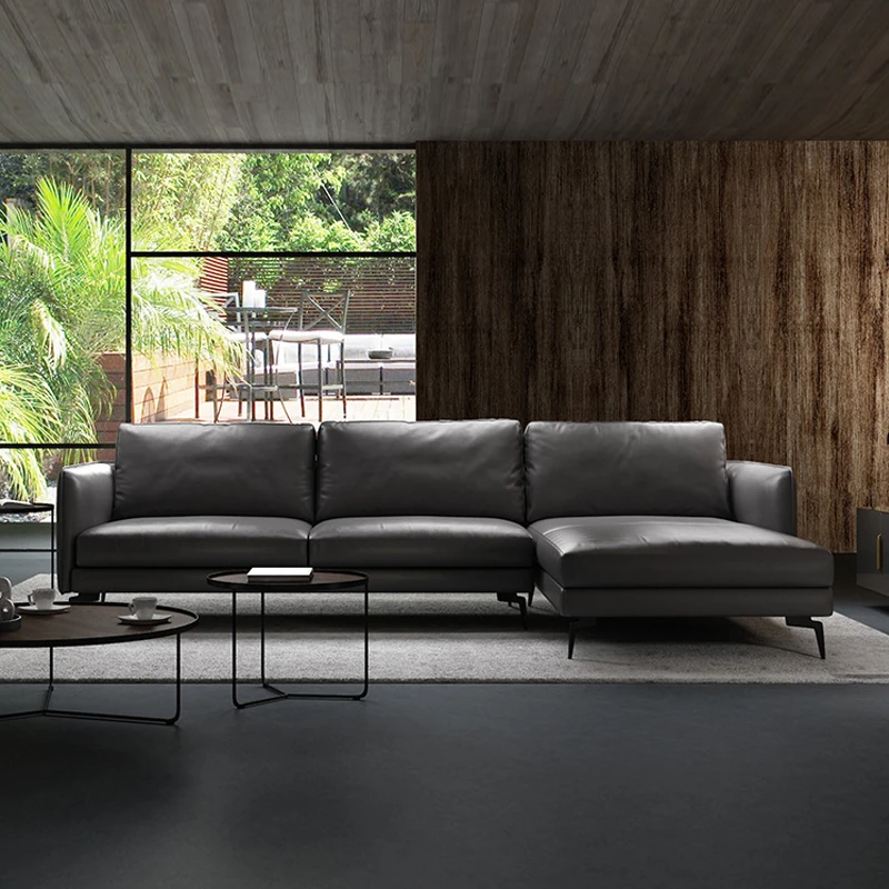 Modern Italian Minimalist Genuine Leather Sofa - Contemporary Straight-Line L-Shaped Corner Sofa in High-Quality Cowhide for Stylish Living Spaces