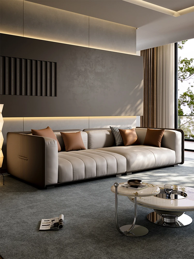 Italian Minimalist Luxury Sofa with Piano Key Design - Genuine Leather for Small Living Rooms, Featuring Comfortable Latex Top-Grain Cowhide. Perfect for Stylish Spaces!
