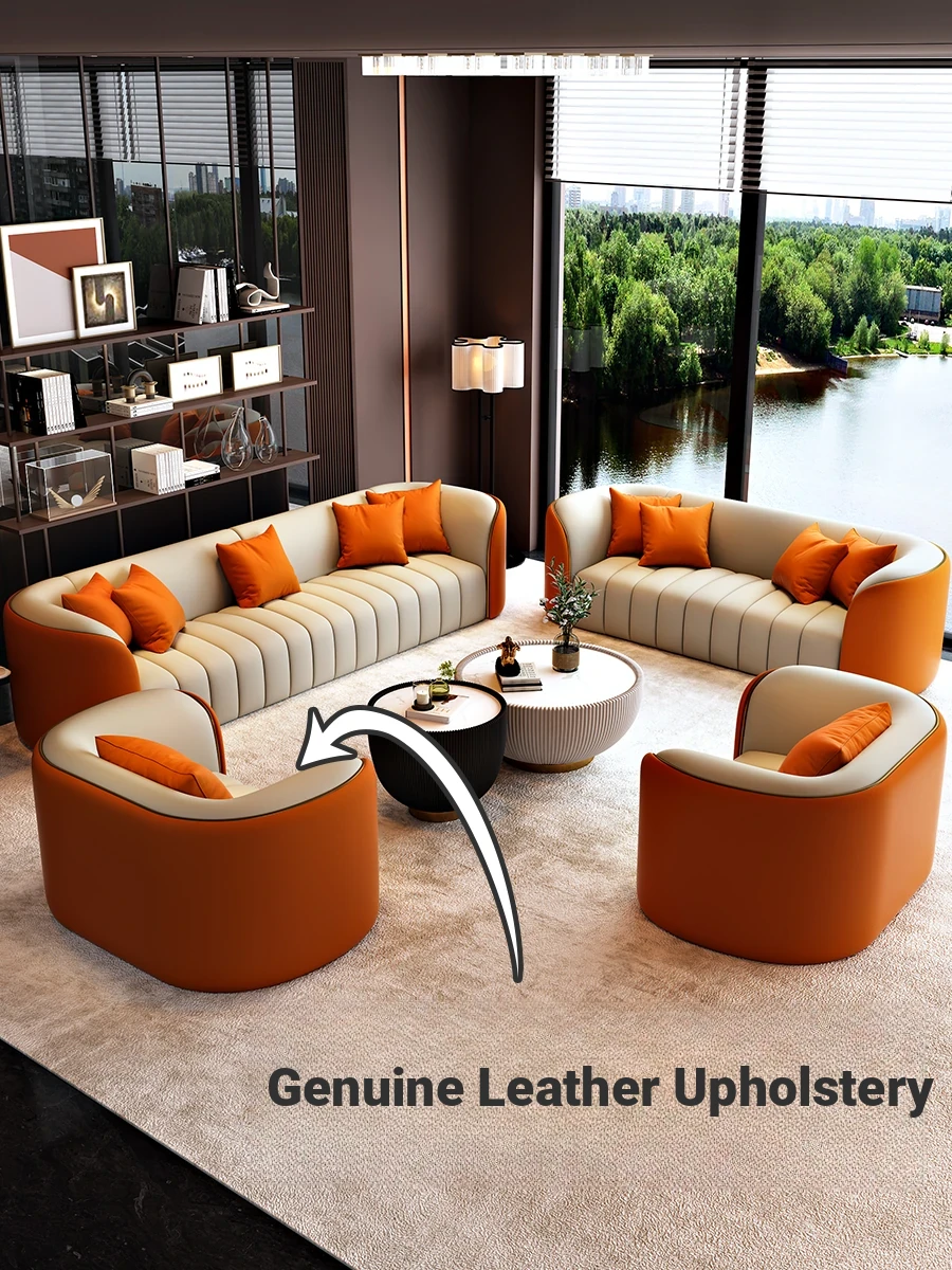 Stylish Italian Minimalist Genuine Leather Sofa - Large and Compact Options for Living Room - Premium Cowhide Sectional Sofa for Modern Homes