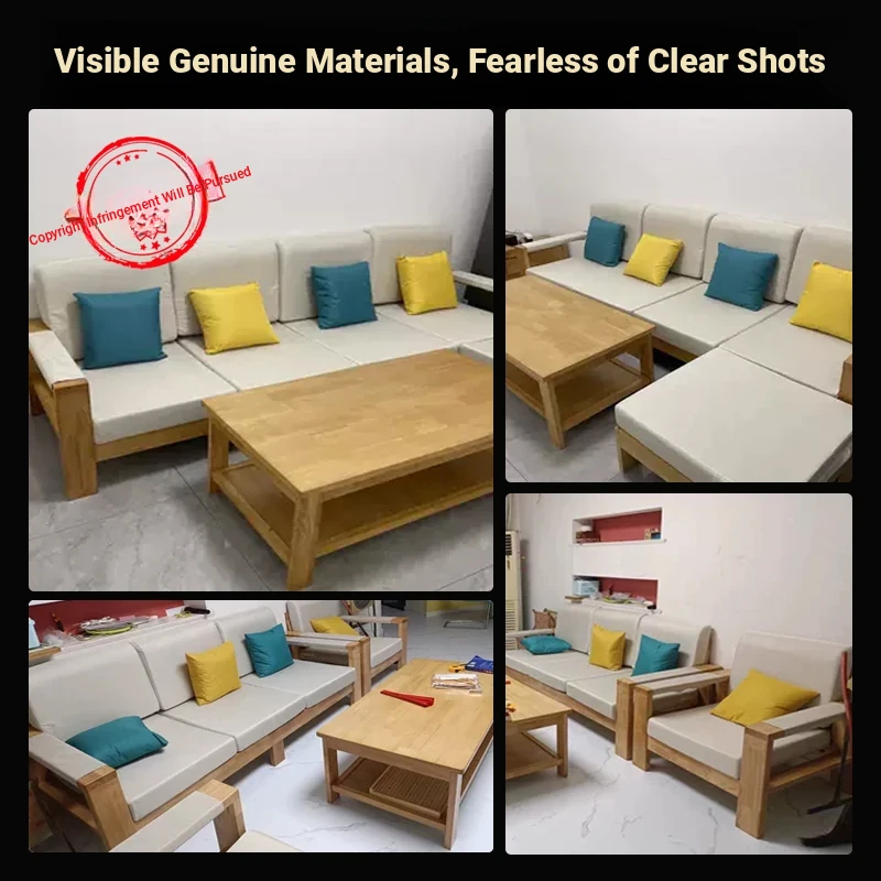 Modern Minimalist Black Walnut Solid Wood Sofa Set for Living Room - Versatile All-Season Design for Small Spaces, Fully Made of Solid Wood, Perfect for Cozy Homes