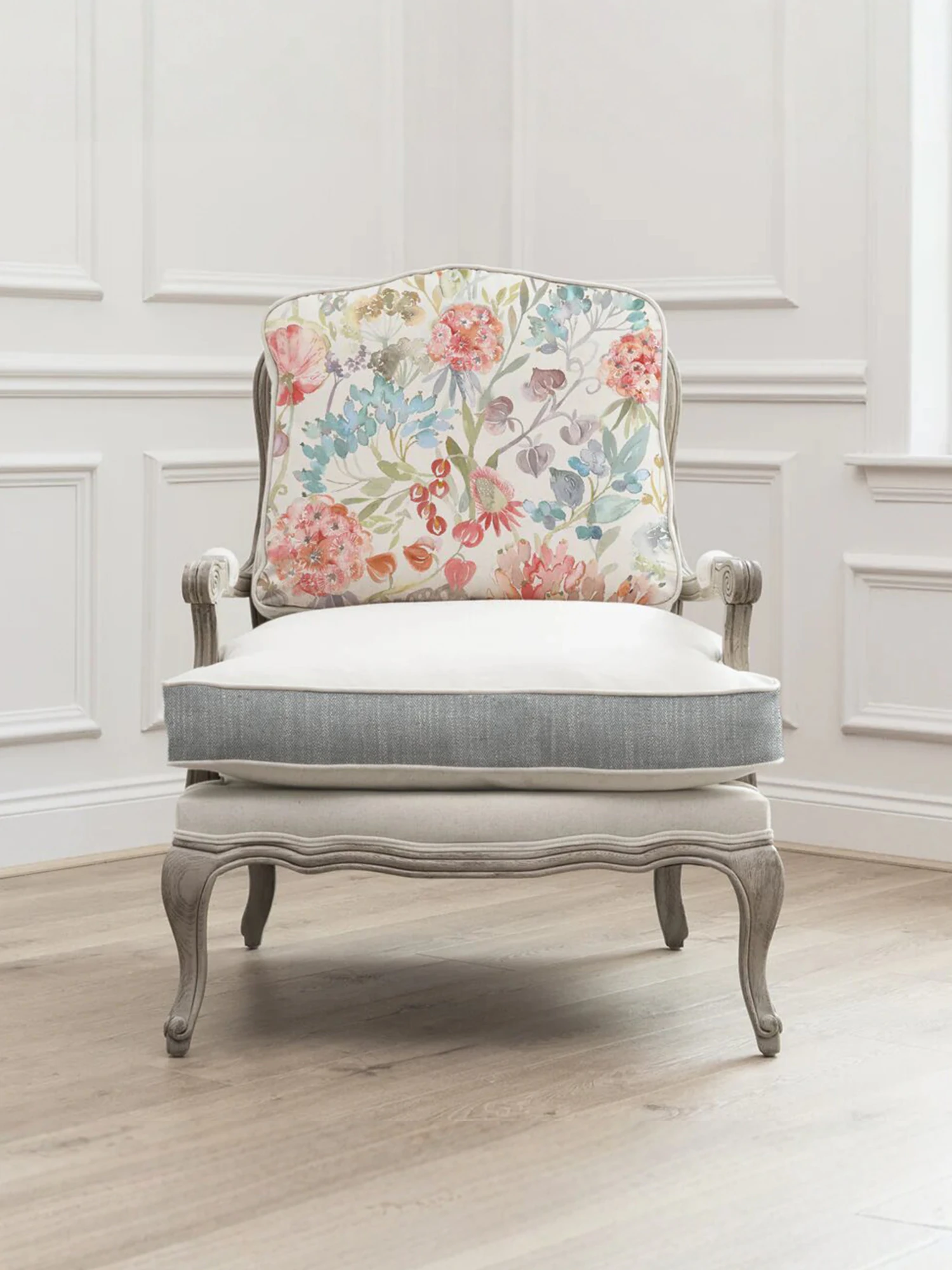 French Country Woven Rattan Armchair – Stylish Single Chair for Small Living Rooms, Vintage American Design, Floral Print, Solid Wood, Perfect for Relaxing on the Balcony