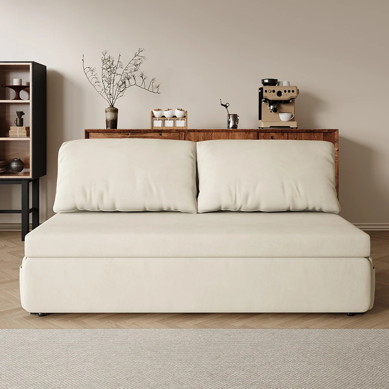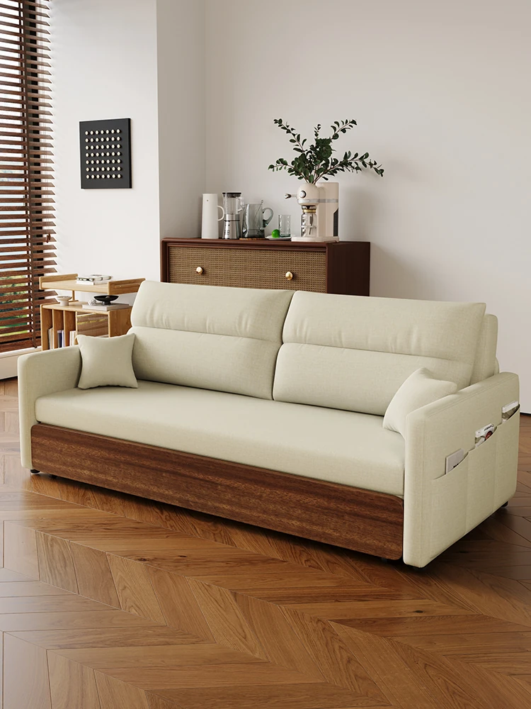 【Free Shipping to Hong Kong】Versatile Solid Wood Sofa Bed - Foldable and Expandable Design for Small Living Rooms, 1.5m Fabric Sofa Bed