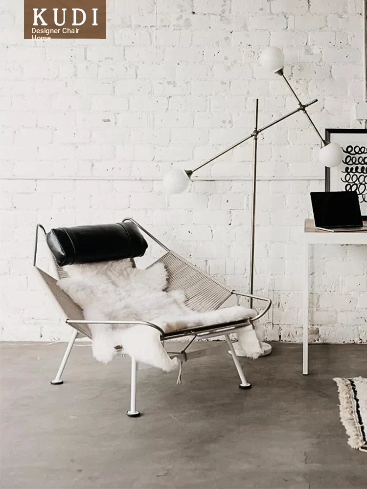 Danish Designer Wabi-Sabi Style Lounge Chair - Vintage Flag Rope Creative Leisure Chair, Handwoven Minimalist Armchair for Ultimate Relaxation