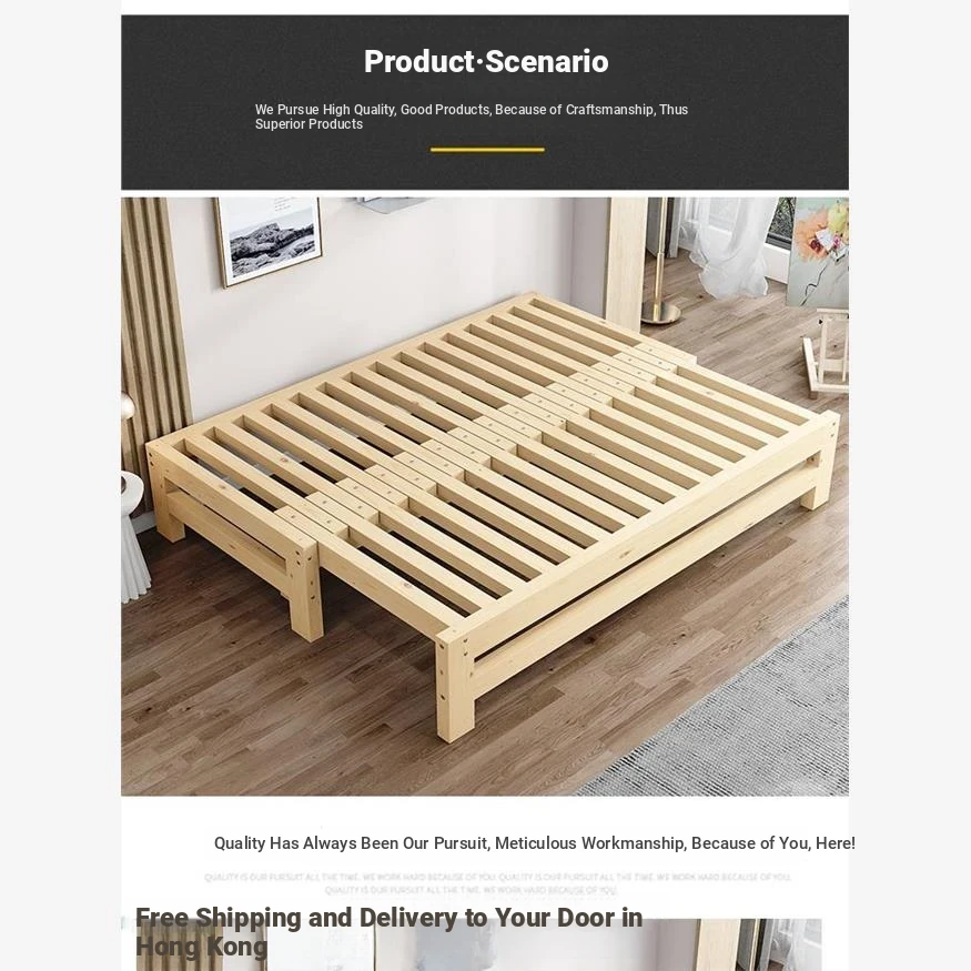 2024 New Folding Solid Wood Sofa Bed - Multi-Functional Design for Small Apartments, Perfect for Living Rooms, Comfortable for Sitting and Sleeping, Free Shipping in Hong Kong!