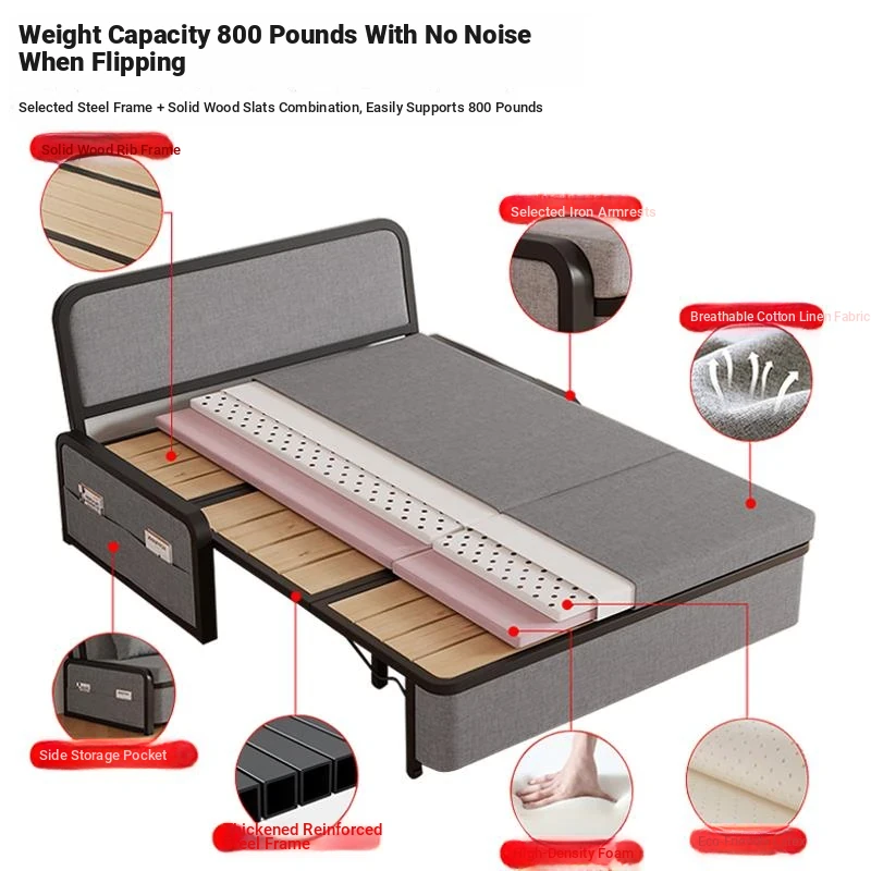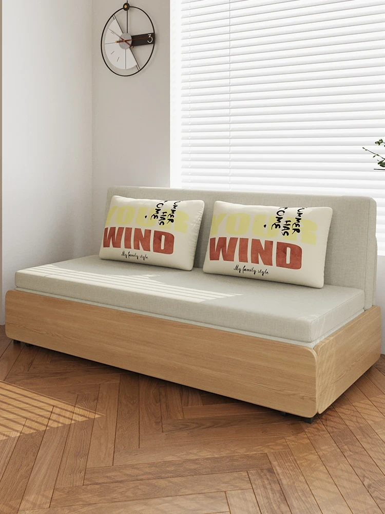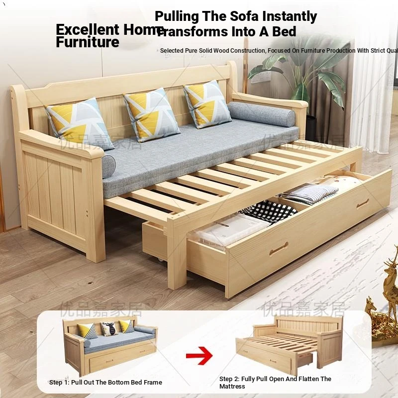 Multifunctional Solid Wood Sofa Bed - Foldable for Living Room, 1.5m Double Size, 1.8m Expandable for Small Spaces, Versatile Pull-Out Design