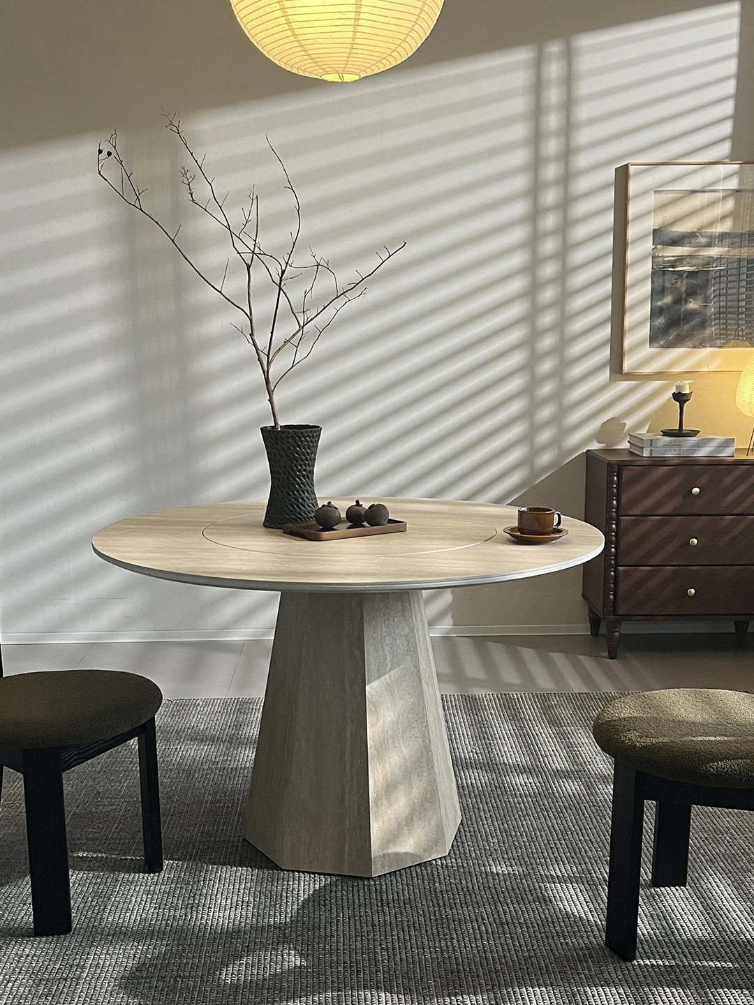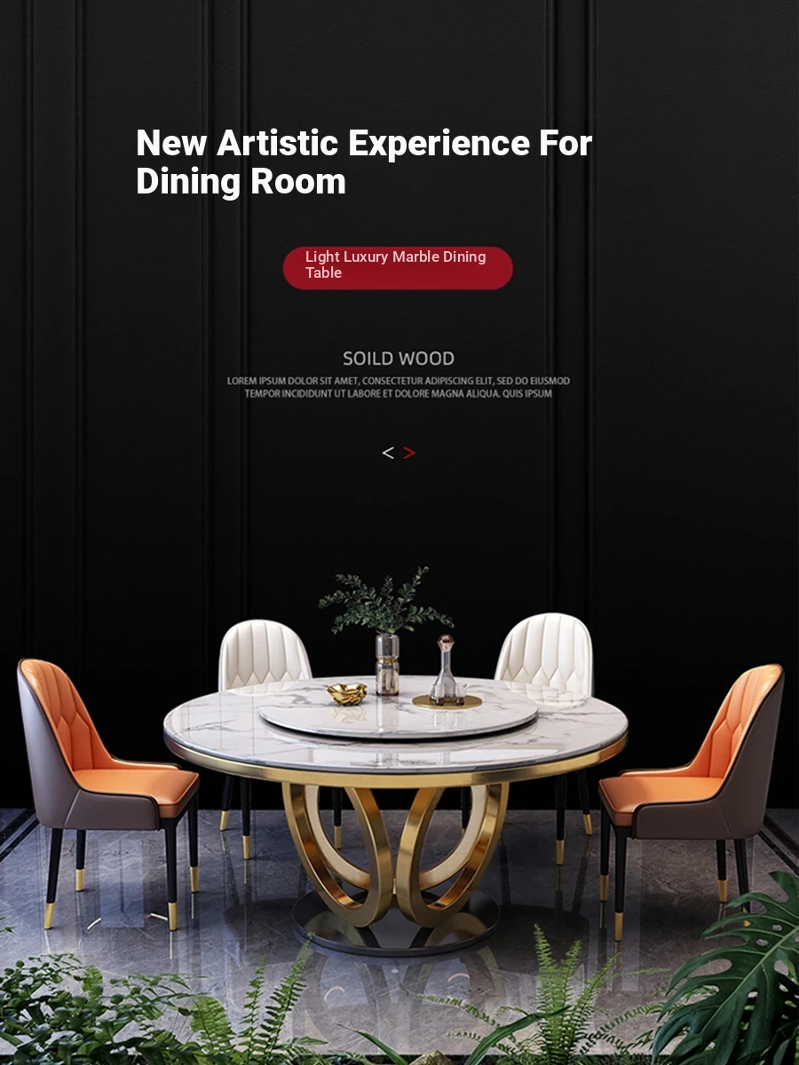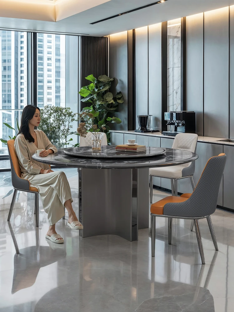 MIVICA Original Design Italian Light Luxury Round Dining Table with Imported Brazilian Marble Lazy Susan - International Pavilion F2