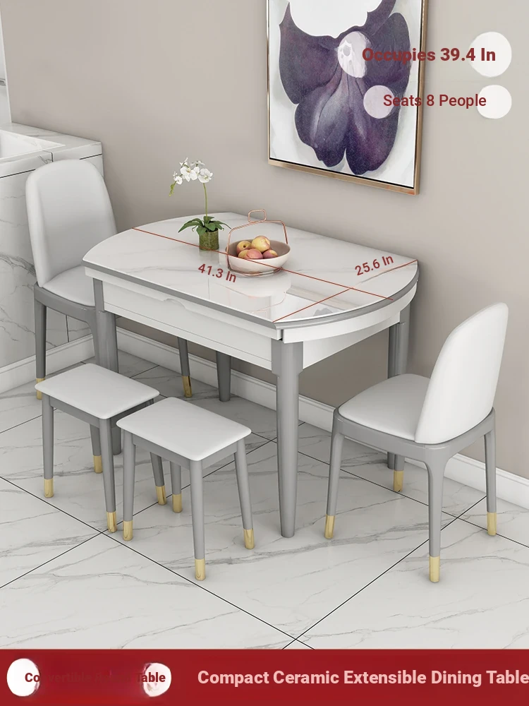 Modern Minimalist Ultra-Crystalline Stone Dining Table and Chair Set - Elegant Round Table with Rotating Top for Small Spaces, Perfect for Home Dining