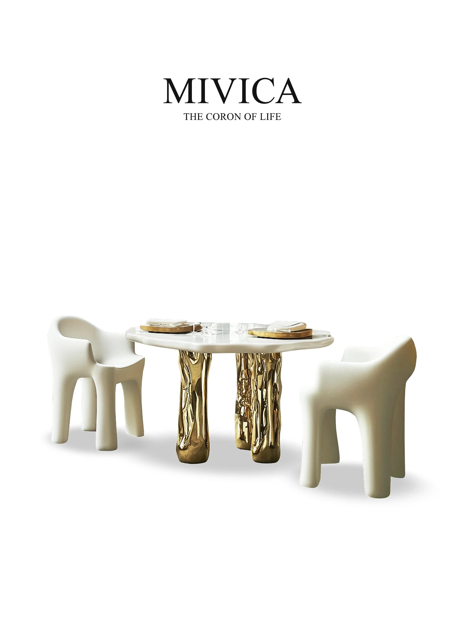 MIVICA Original Design French Elegant Luxury Brazilian Imported Marble Dining Table and Chairs - International Pavilion F2