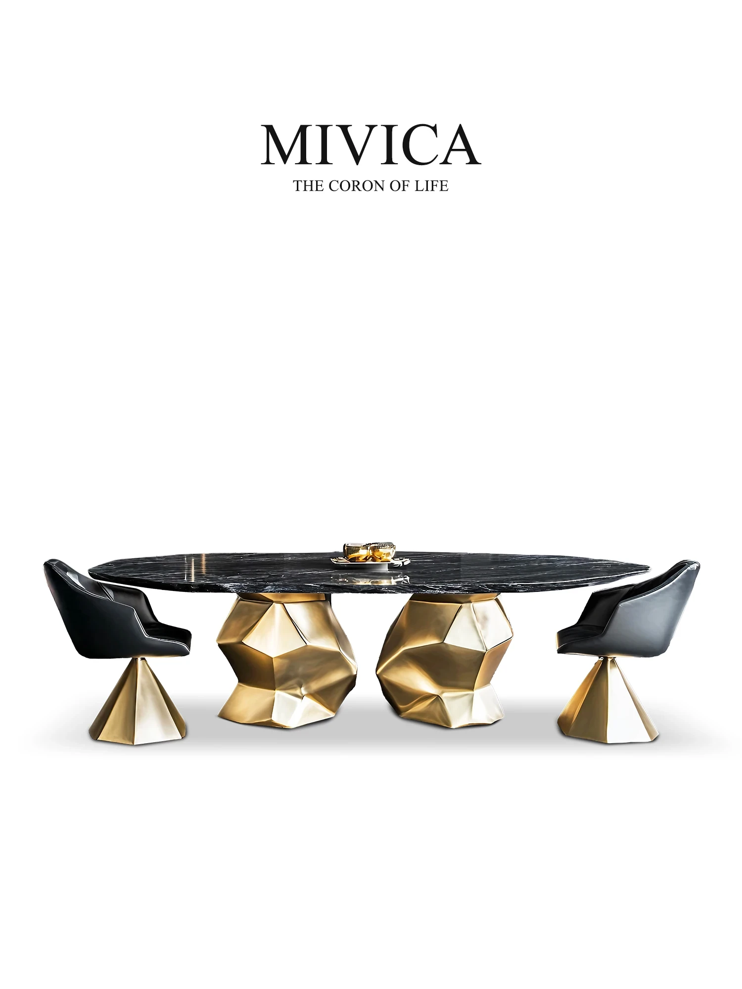 MIVICA Original Design Modern Art Long Dining Table and Chairs - Luxury Aesthetic Furniture for Upscale Living Spaces - International Collection J1