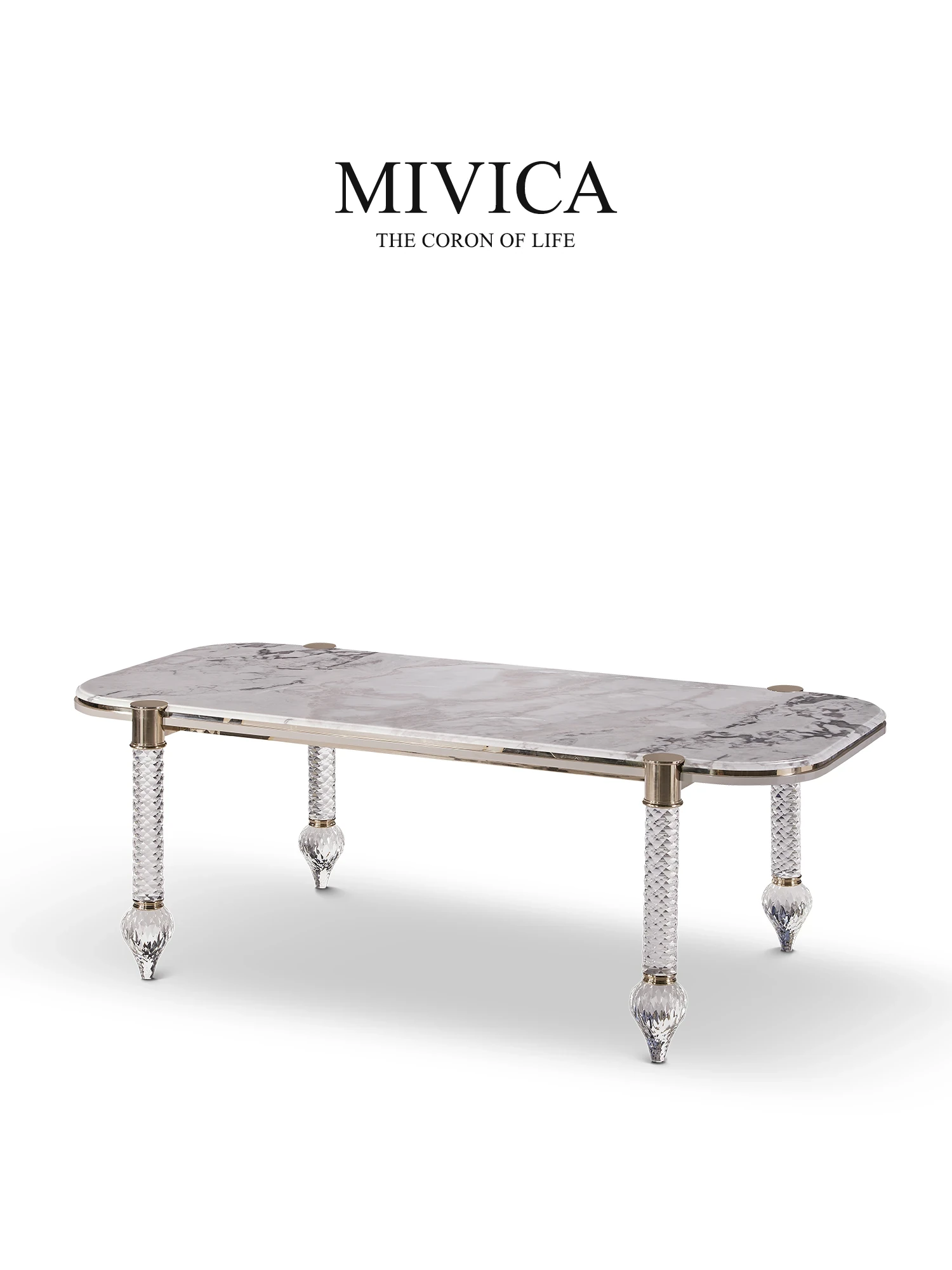 MIVICA Original Design French Elegant Luxury Brazilian Imported Marble K9 Crystal Dining Table - International Pavilion F2