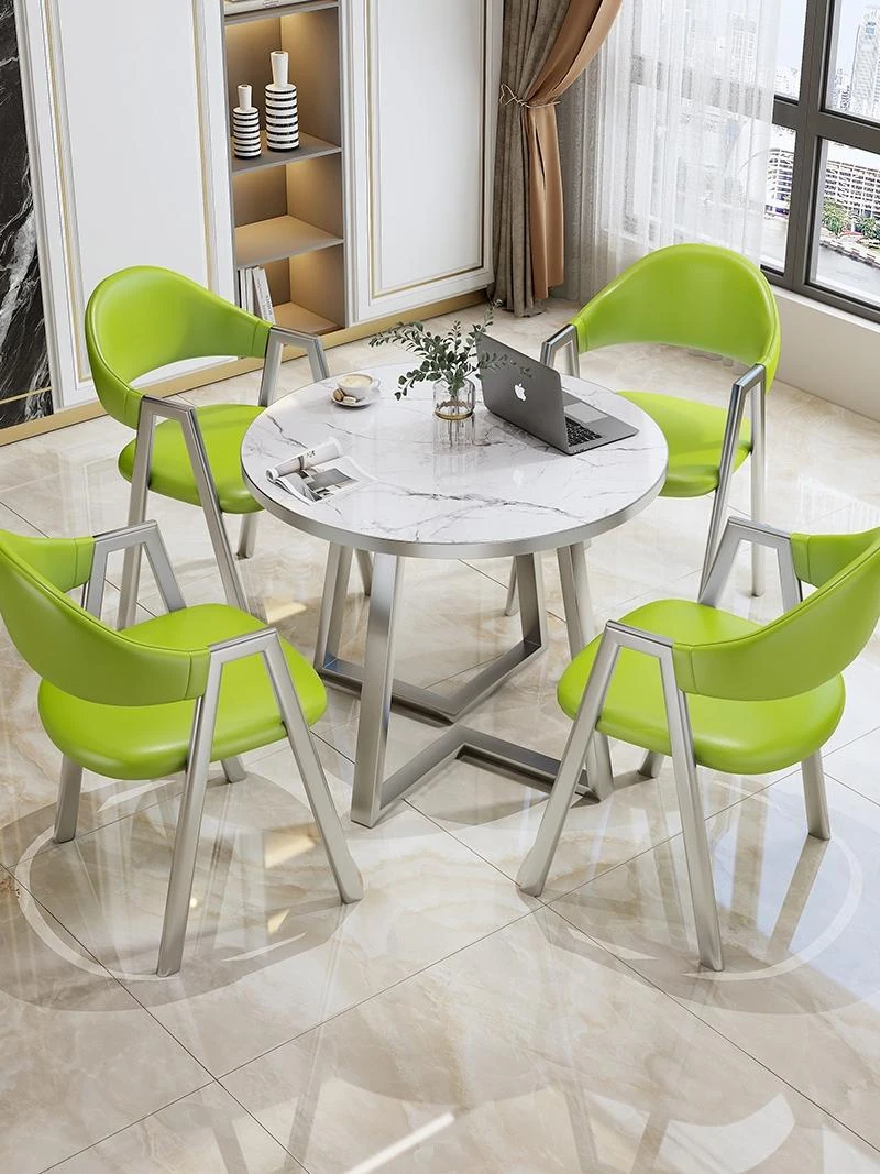Nordic Minimalist Reception Desk and Chair Set - Elegant Negotiation and Meeting Table for Business Offices, Casual Small Round Table for Client Interactions
