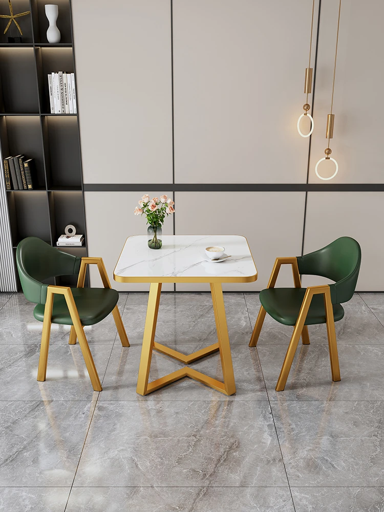 Nordic Modern Minimalist Marble Rectangular Dining Table Set with Unique Iron Frame – Italian Style Simple Dining Table and Chairs Combination for Your Home