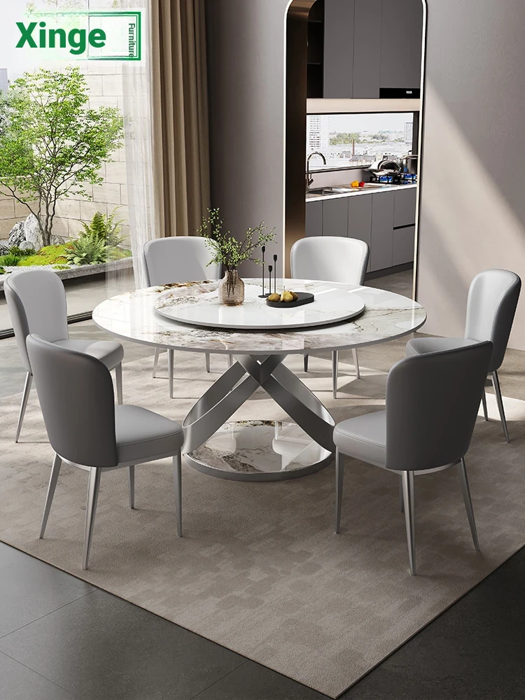Modern Luxury 1.8m Round Dining Table for 10 with Rotating Turntable - Electric High-End Design for Villas and Homes