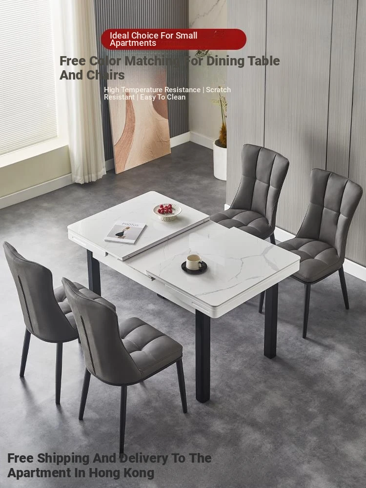 "Modern Folding Dining Table Set with Solid Wood and Expandable Rock Plate - Perfect for Small Spaces and Home Use in Hong Kong"