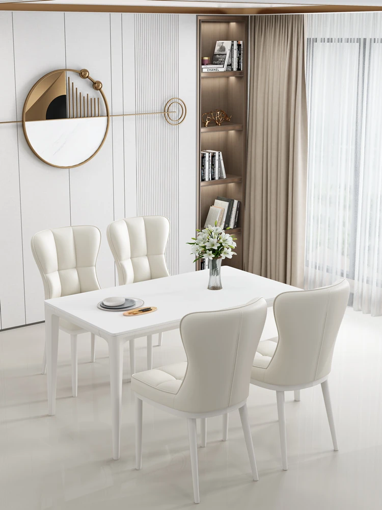 Elegant Pure White Rectangular Dining Table Set - Modern Minimalist Cream-Colored Aluminum Alloy Table with Rock Slab Top for Home Dining