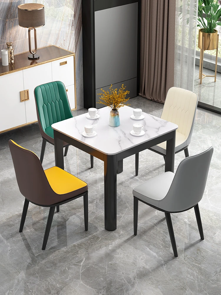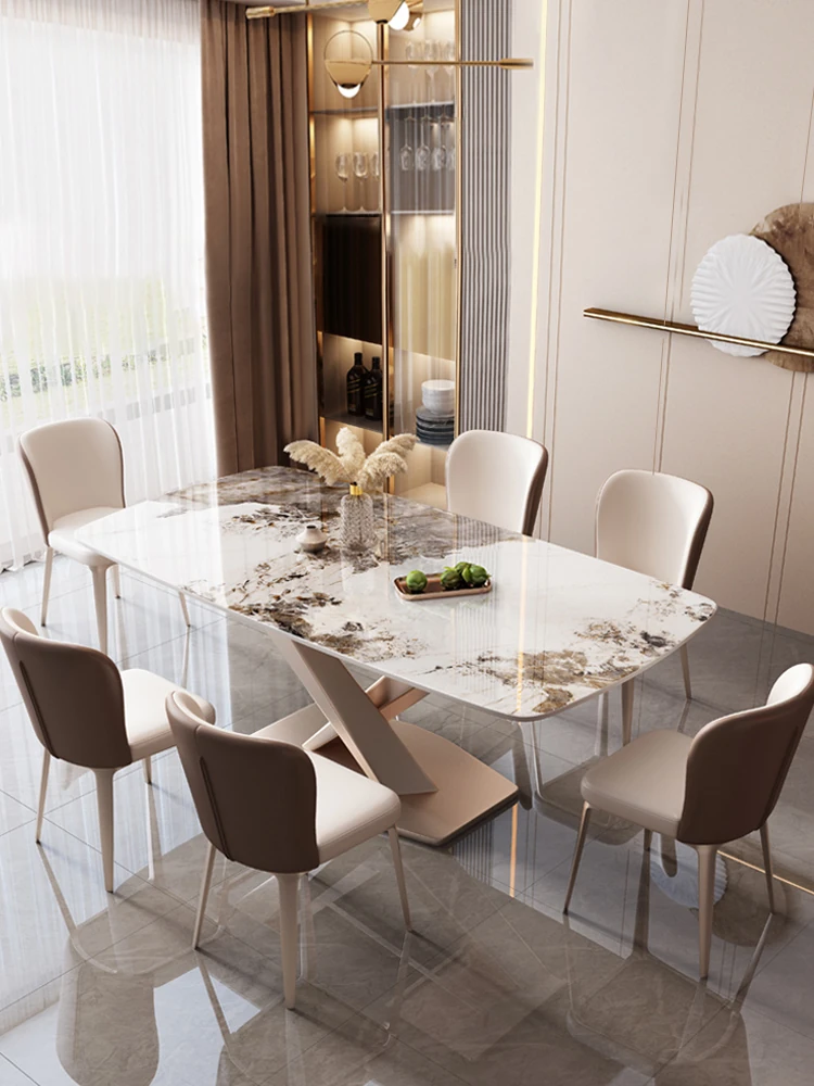 Modern Minimalist Light Luxury Glossy Rock Dining Table Set for Small Spaces – Rectangle Western-style Table with Induction Cooktop, Perfect for Your Home