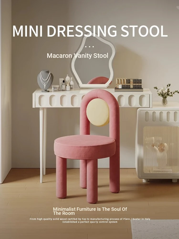 Creamy Minimalist Bedroom Makeup Stool - Trendy INS Café Conference Chair, Nordic Light Luxury Vanity Chair for Home Use