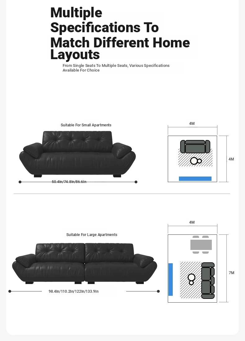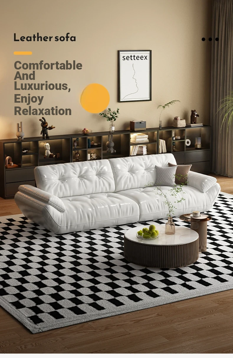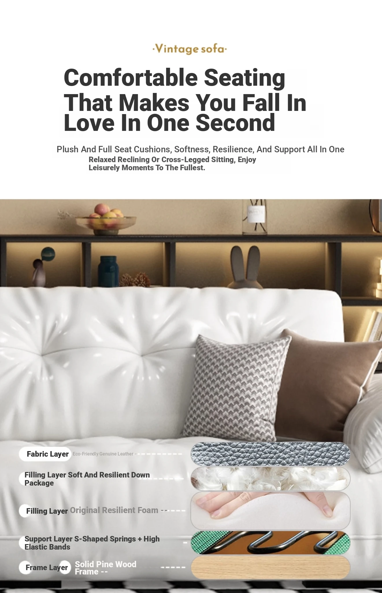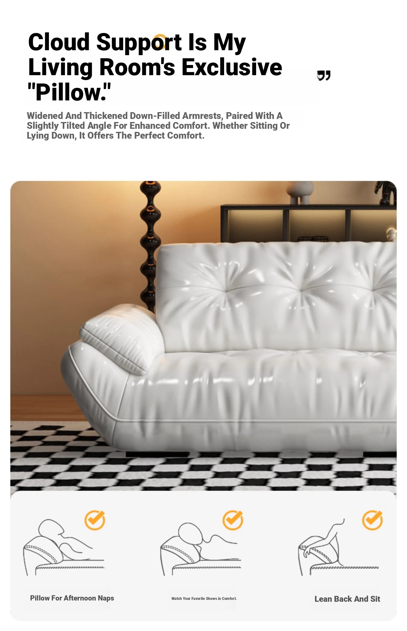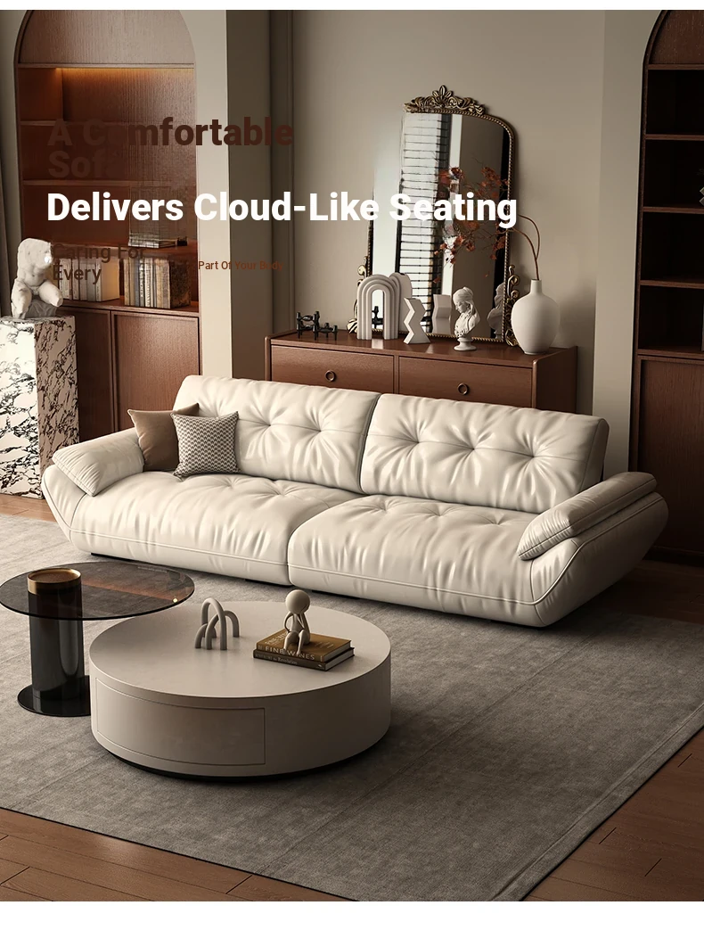 2025 New Creamy Nordic Retro Leather Sailboat Cloud Sofa for Small Spaces – Perfect for Your Living Room!