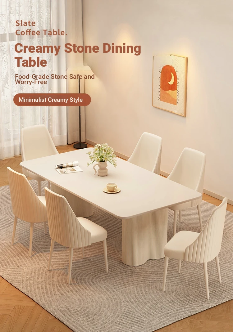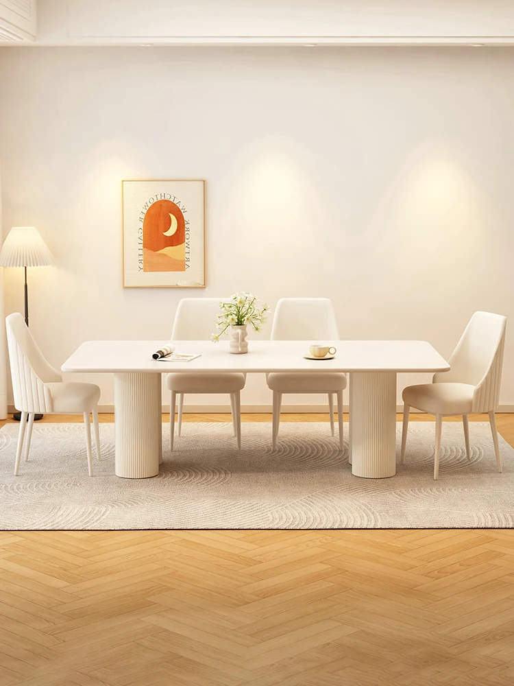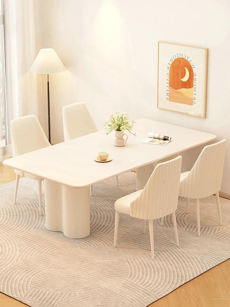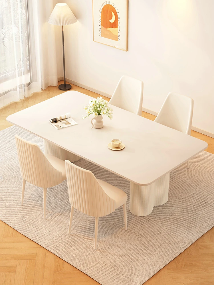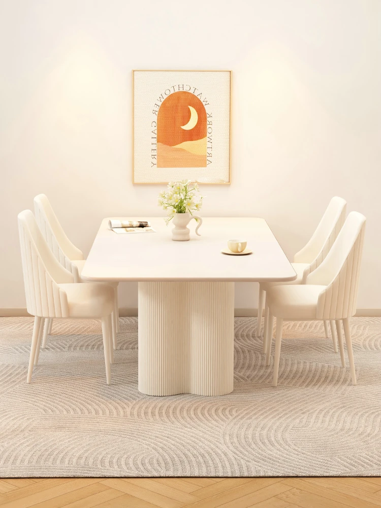 2025 New Modern Minimalist Creamy Rock Panel Dining Table and Chair Set for Small Spaces - Stylish and Luxurious Rectangular Dining Table for Home Use