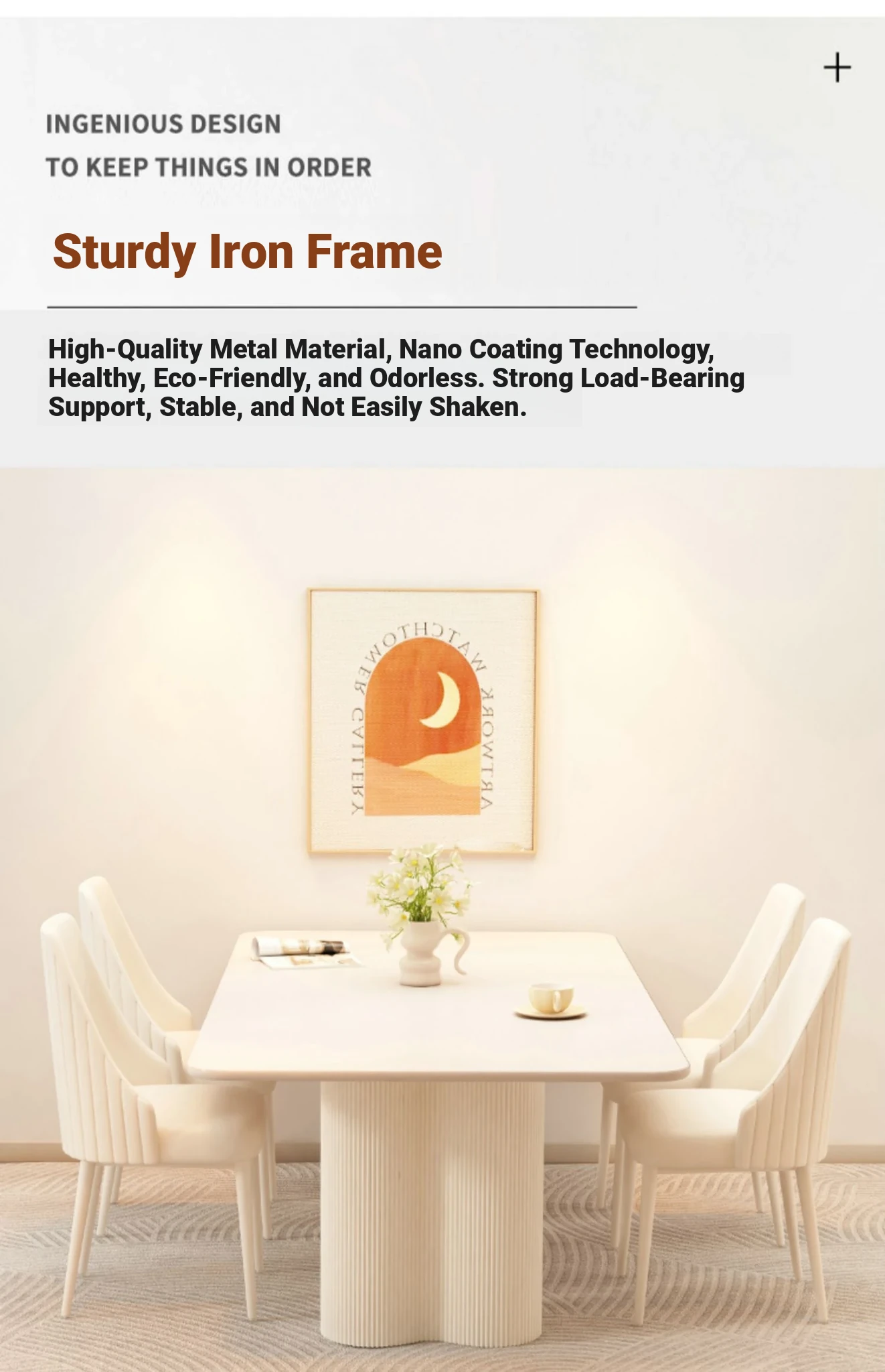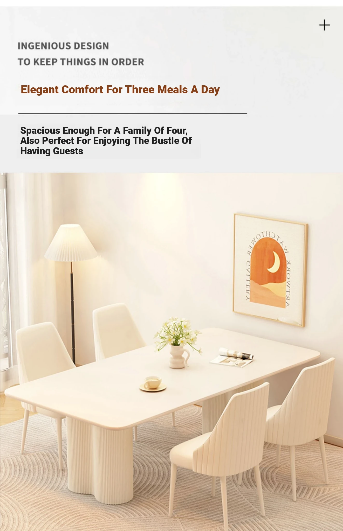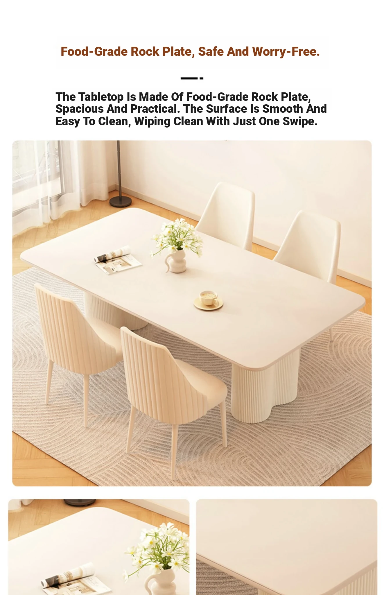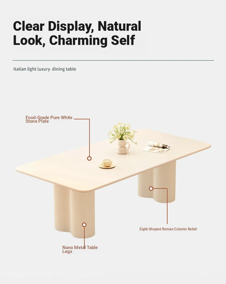 2025 New Modern Minimalist Creamy Rock Panel Dining Table and Chair Set for Small Spaces - Stylish and Luxurious Rectangular Dining Table for Home Use