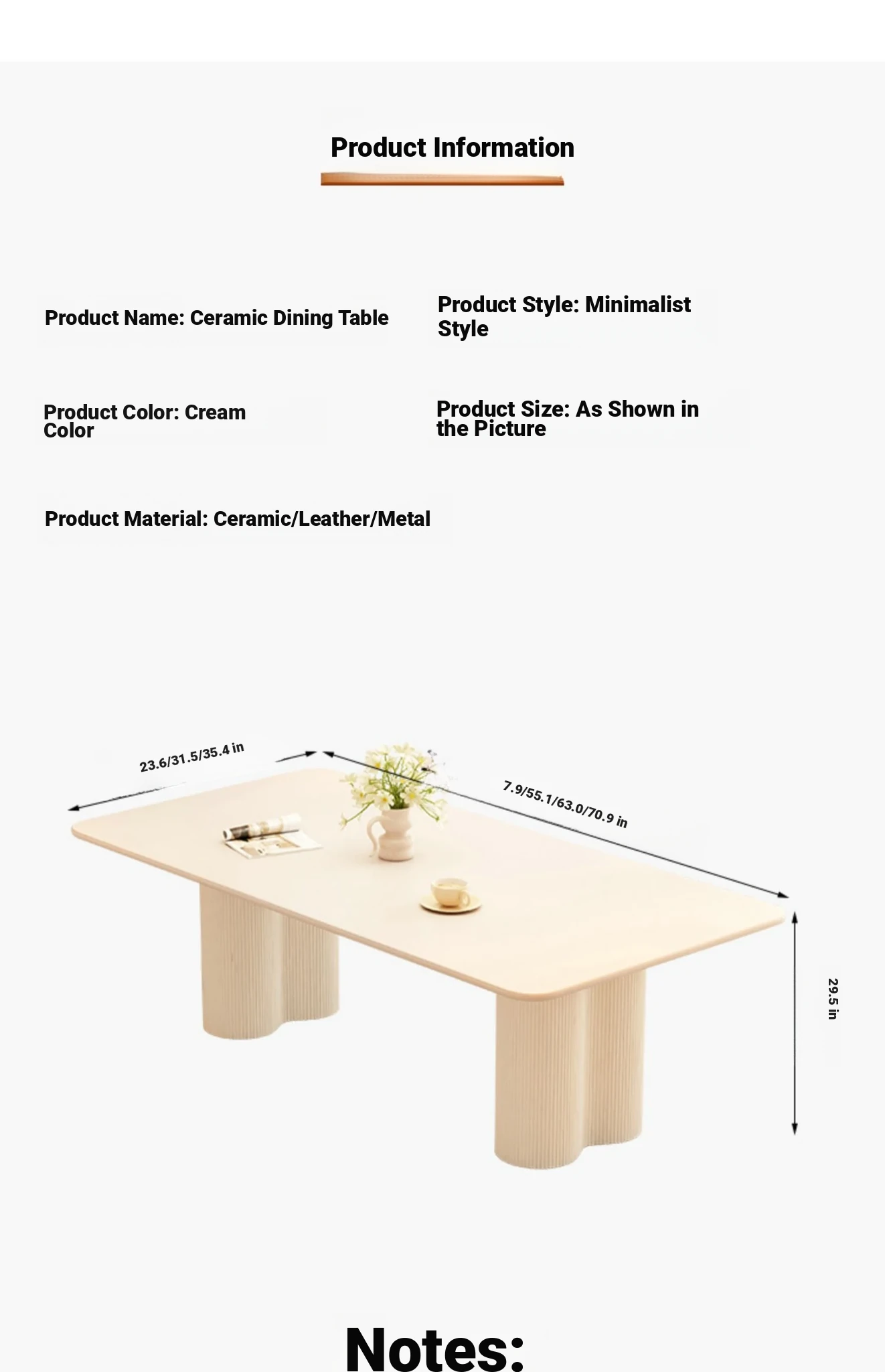 [Single table] pure white rock plate rectangular dining table 70.87in*35.43in*29.53in