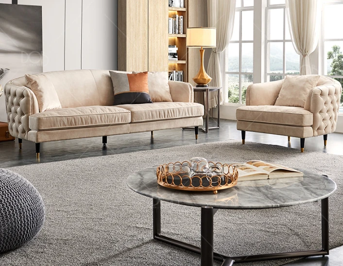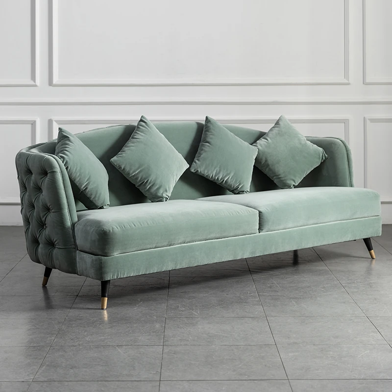 American Style Post-Modern Living Room Set - Minimalist 3-Seater Velvet Sofa for Lounge and Beauty Salons, Perfect Blend of Elegance and Comfort