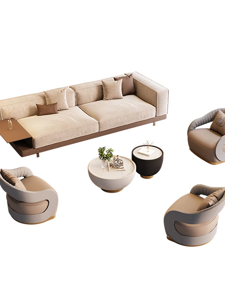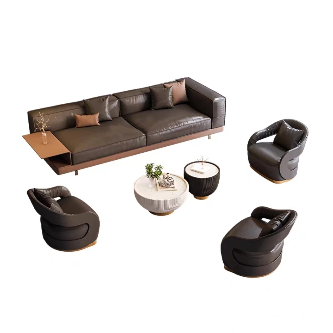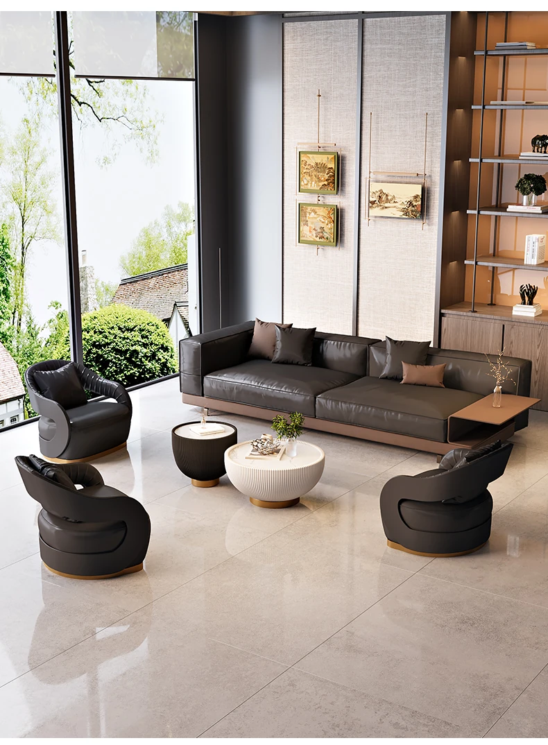 Comfortable Reception Sofa Set for Hotels and Offices - Stylish Leather Sofa and Coffee Table for Business Meeting Lounges and Break Areas