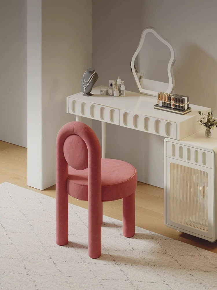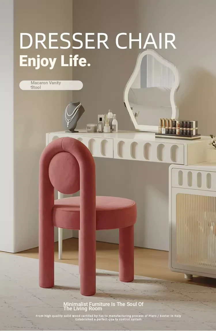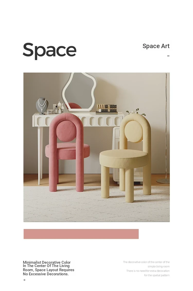 Creamy Minimalist Bedroom Makeup Stool - Trendy INS Café Conference Chair, Nordic Light Luxury Vanity Chair for Home Use