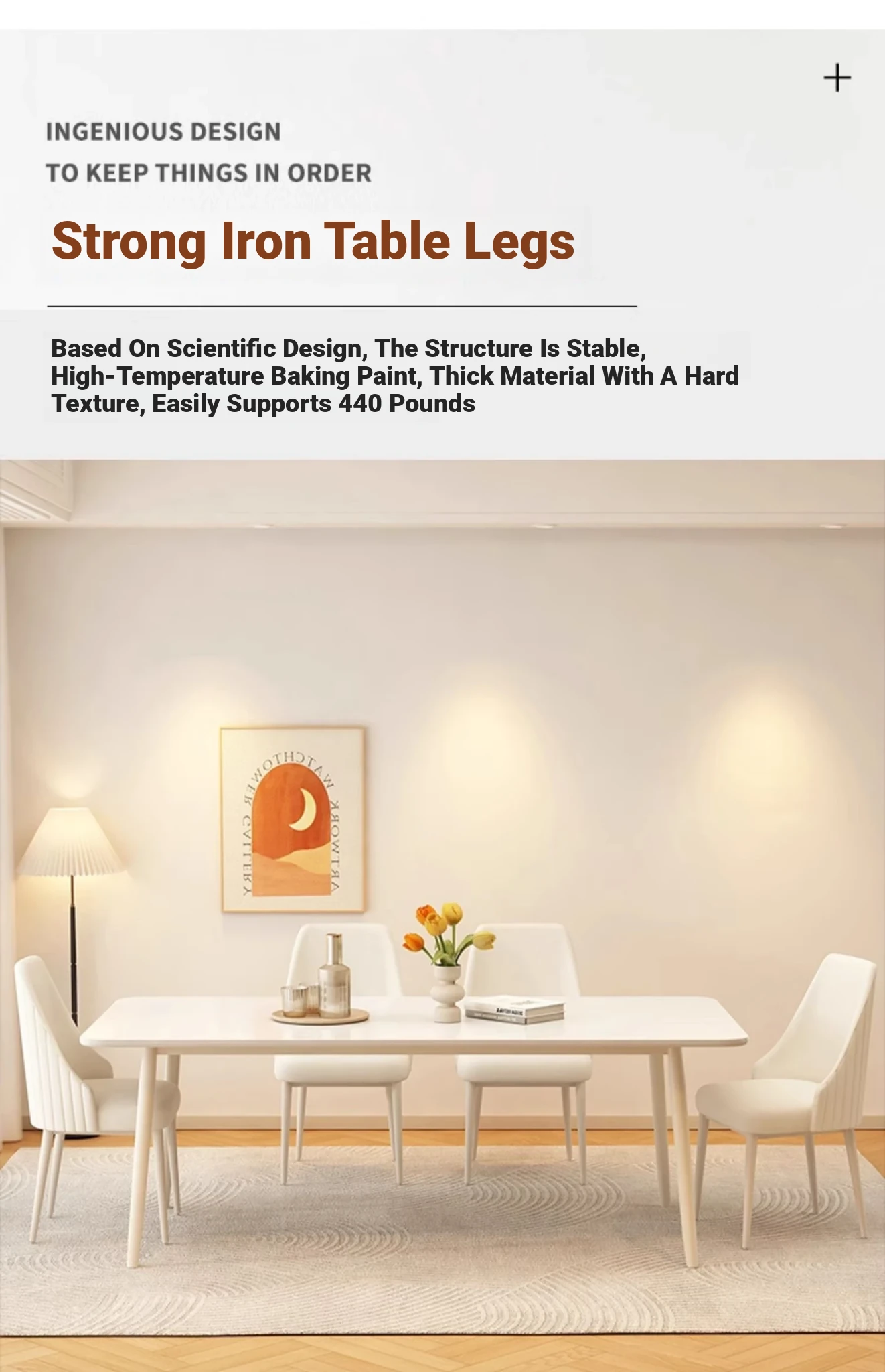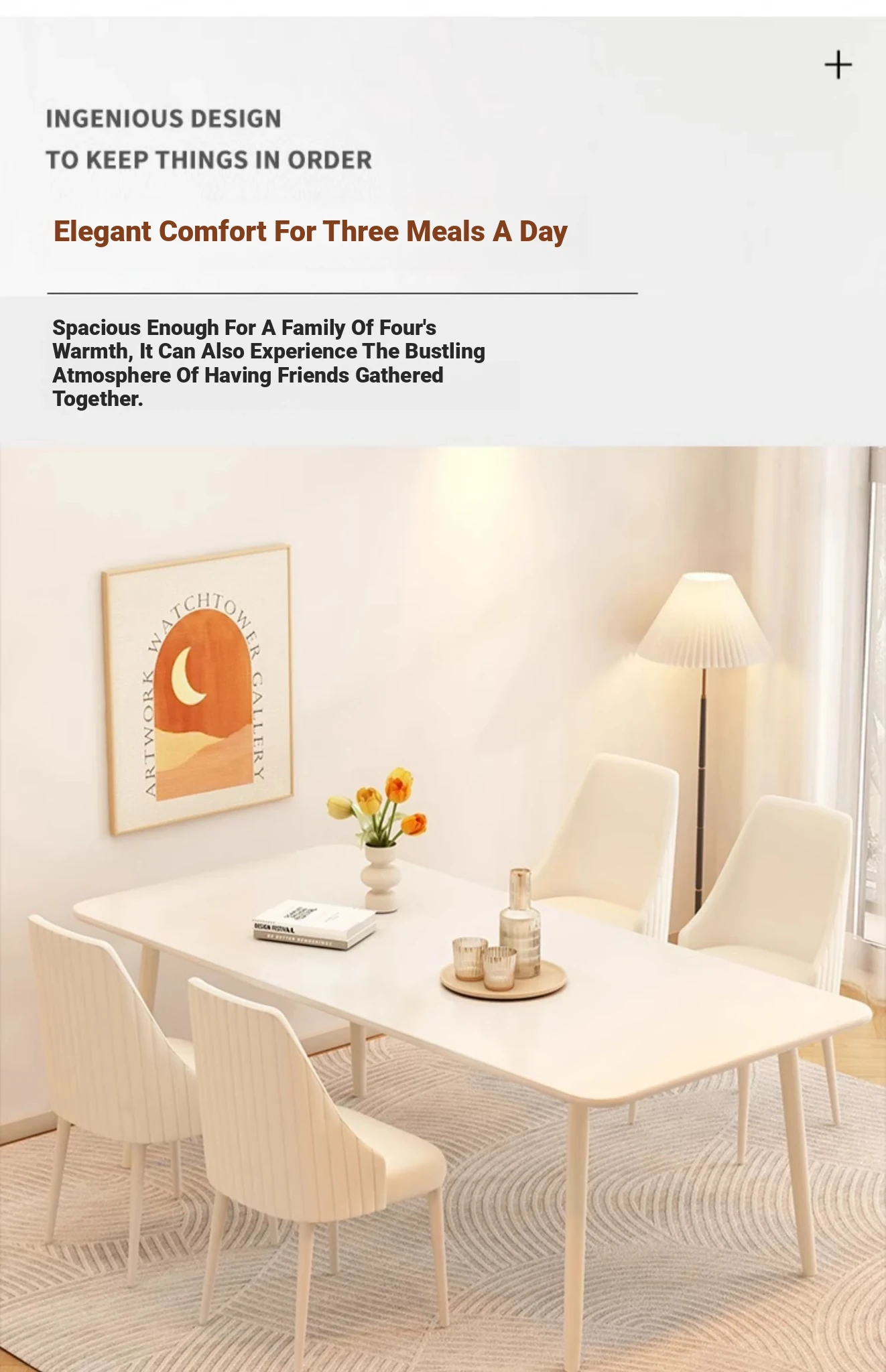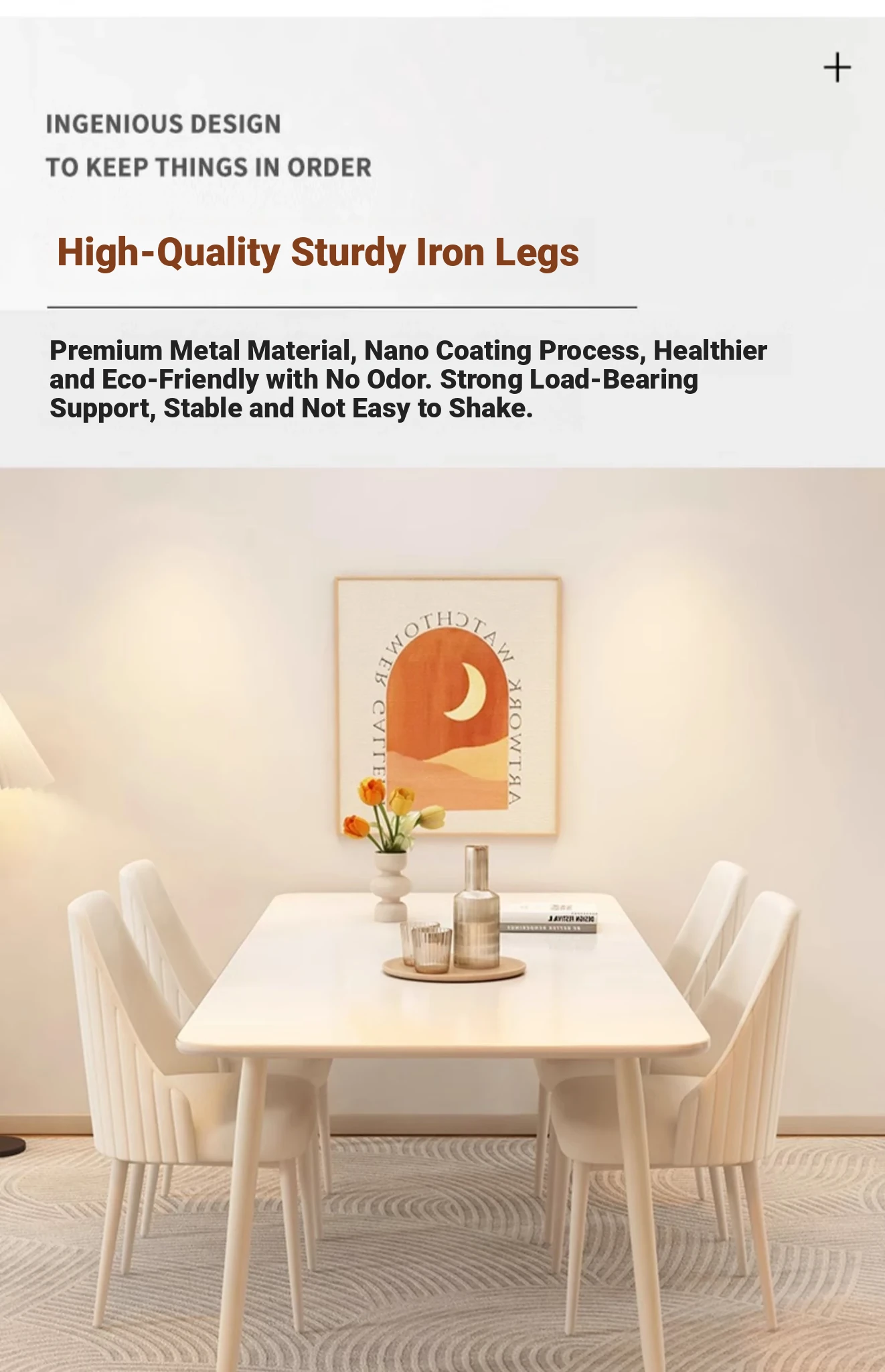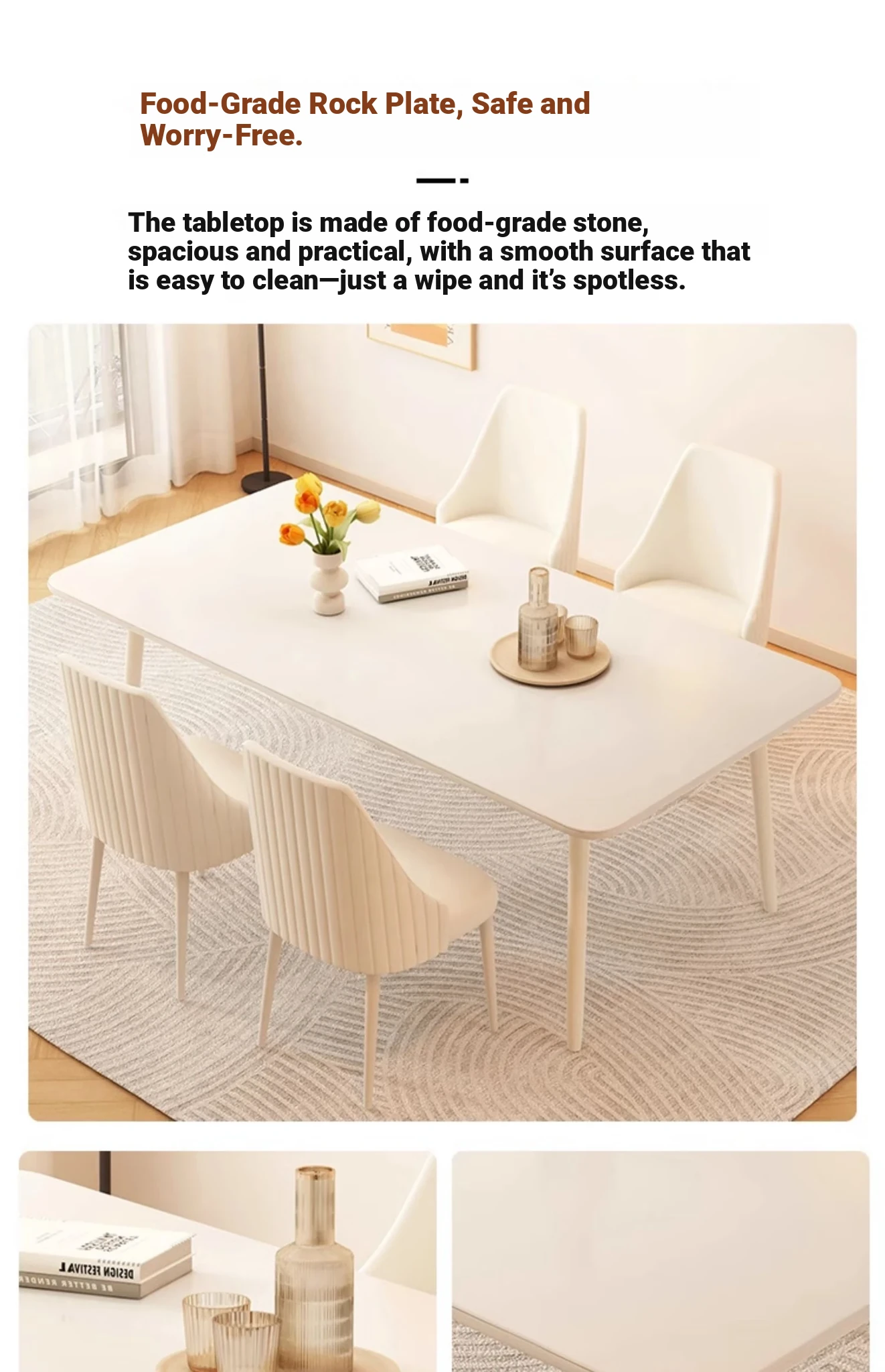 [One Table and Four Chairs] 55.12 in Pure White Rock Plate Dining Table +4 Leather Chairs
