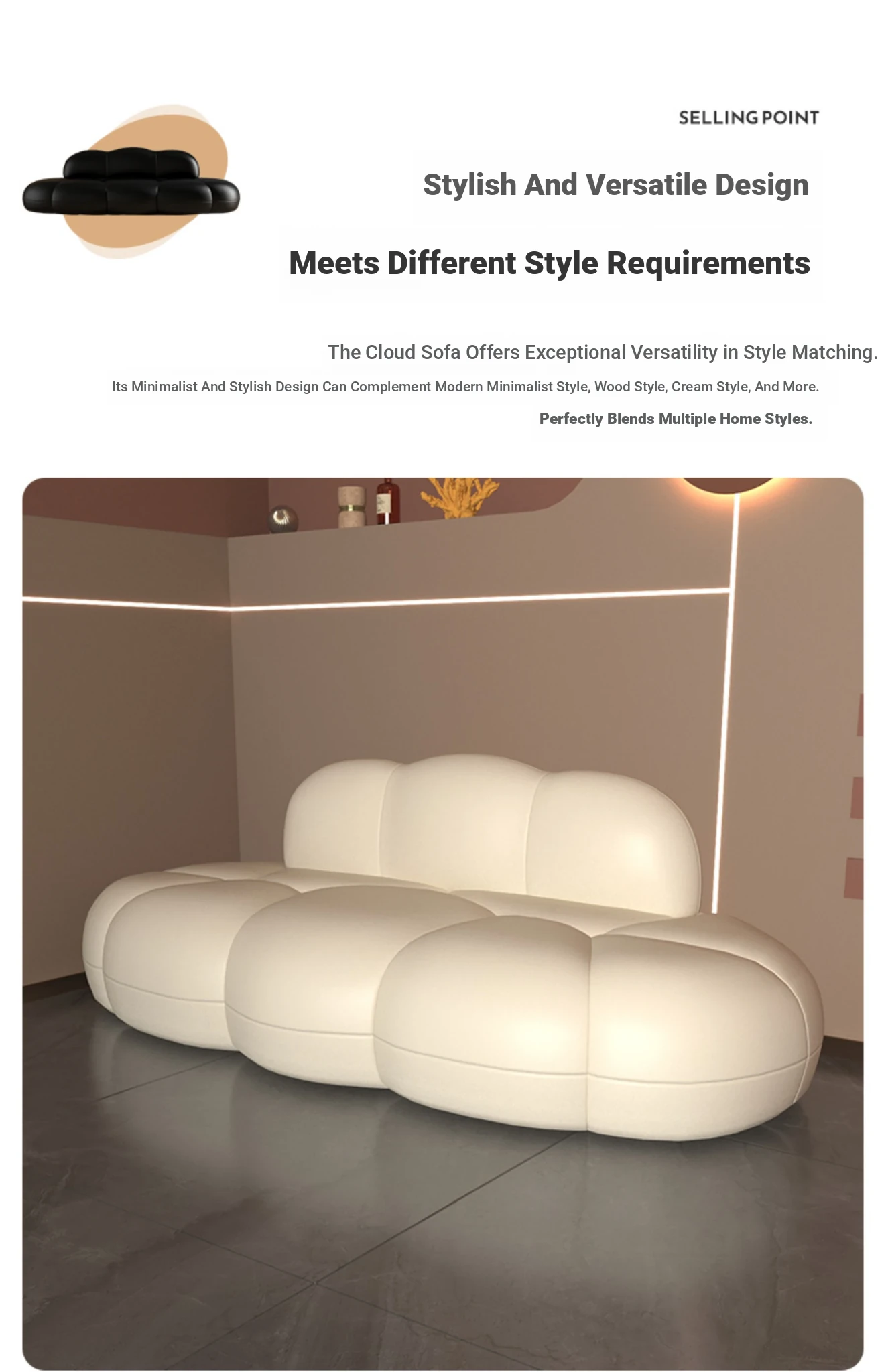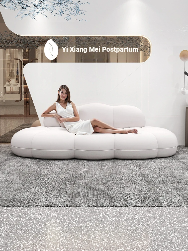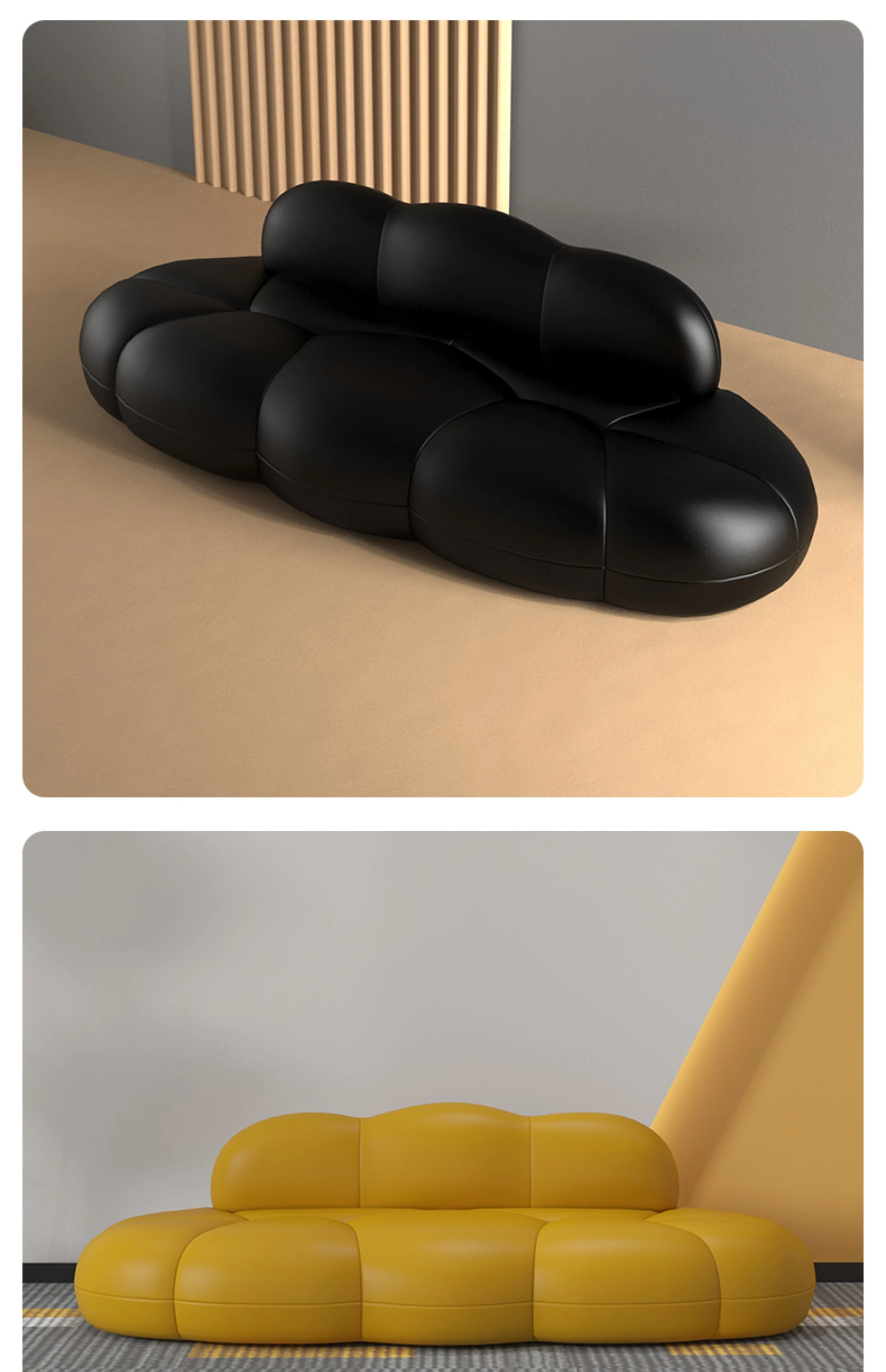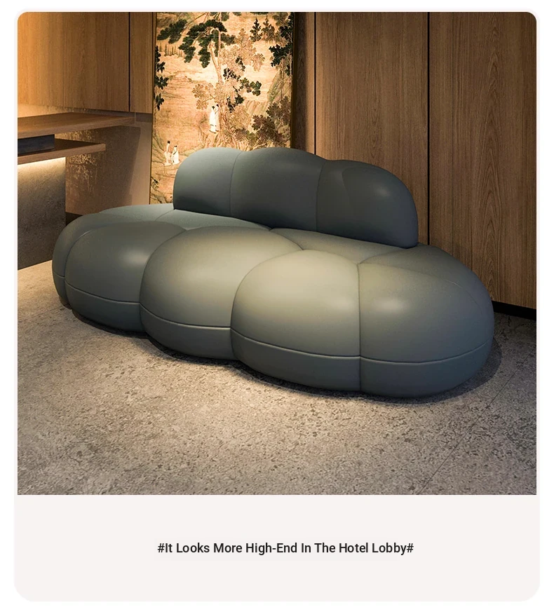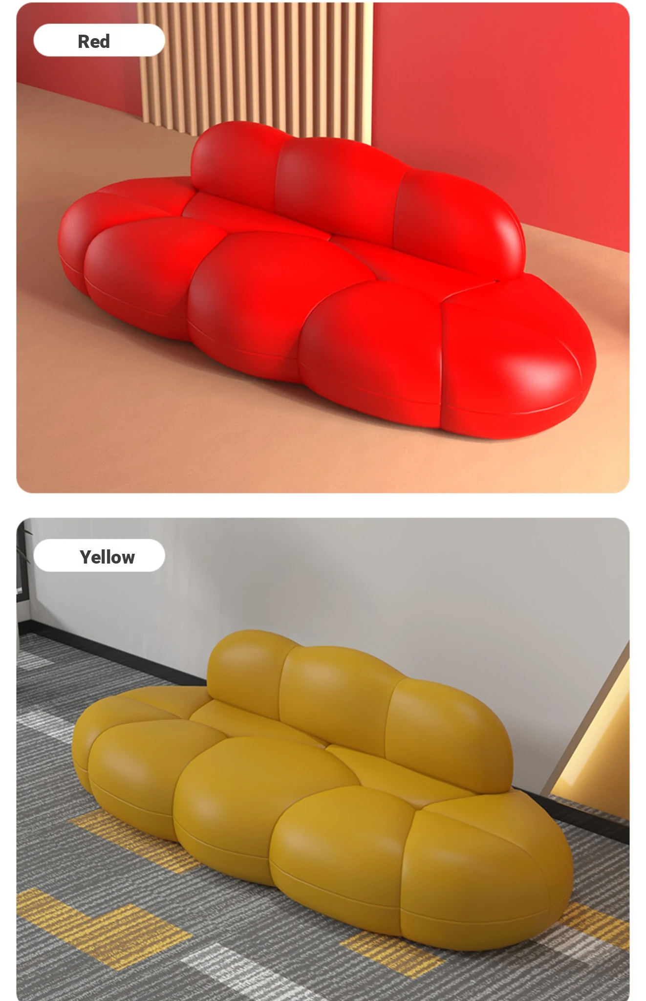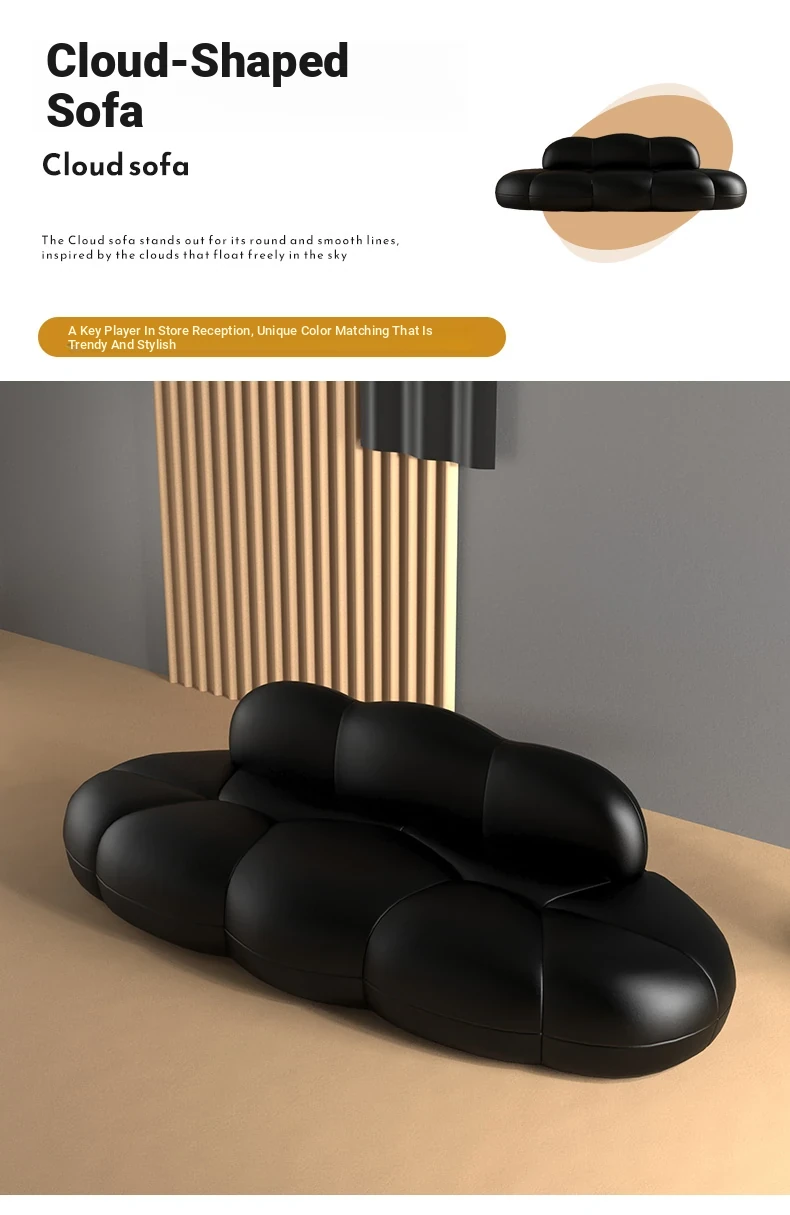 Creative Designer Leather Sofa for Beauty Salons and Clothing Stores - Unique Cloud-Shaped Reception Area Seating for a Trendy Atmosphere