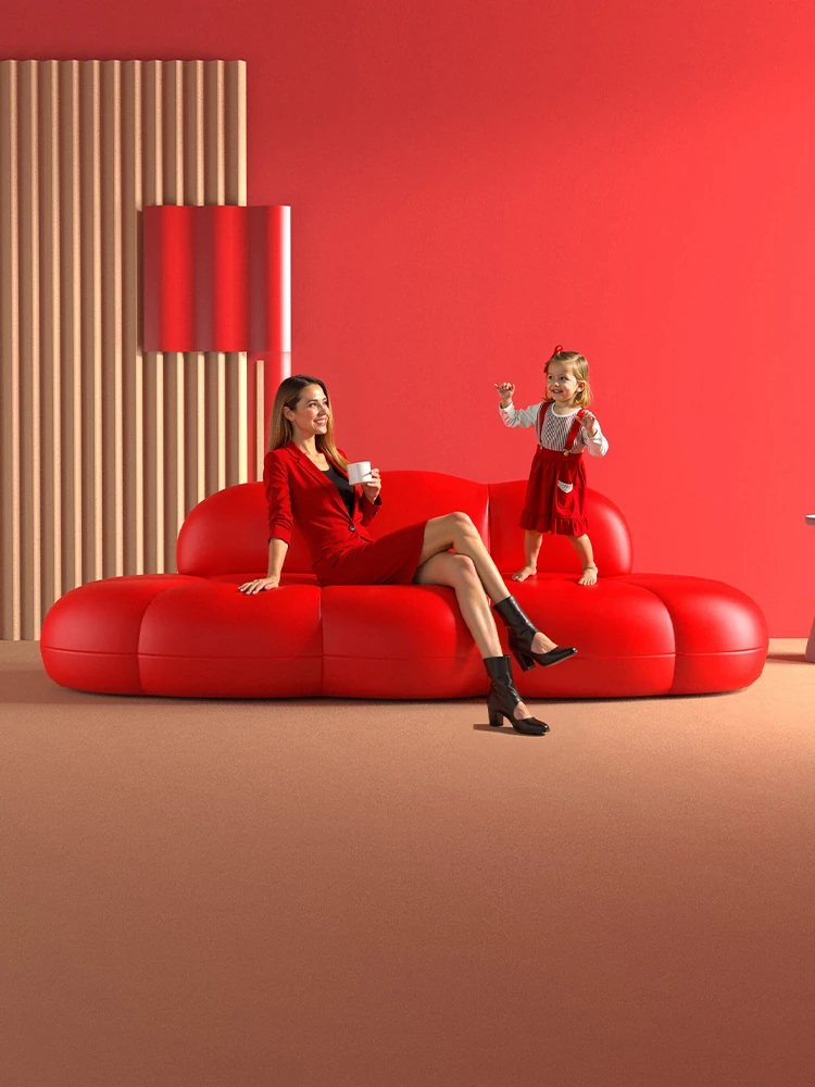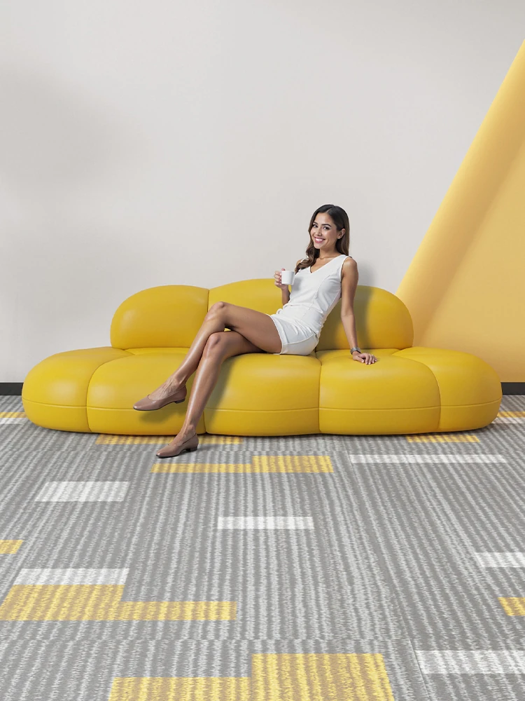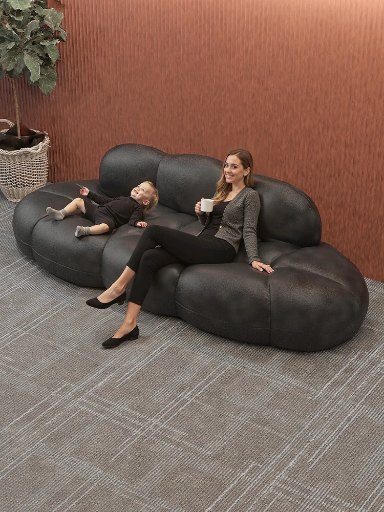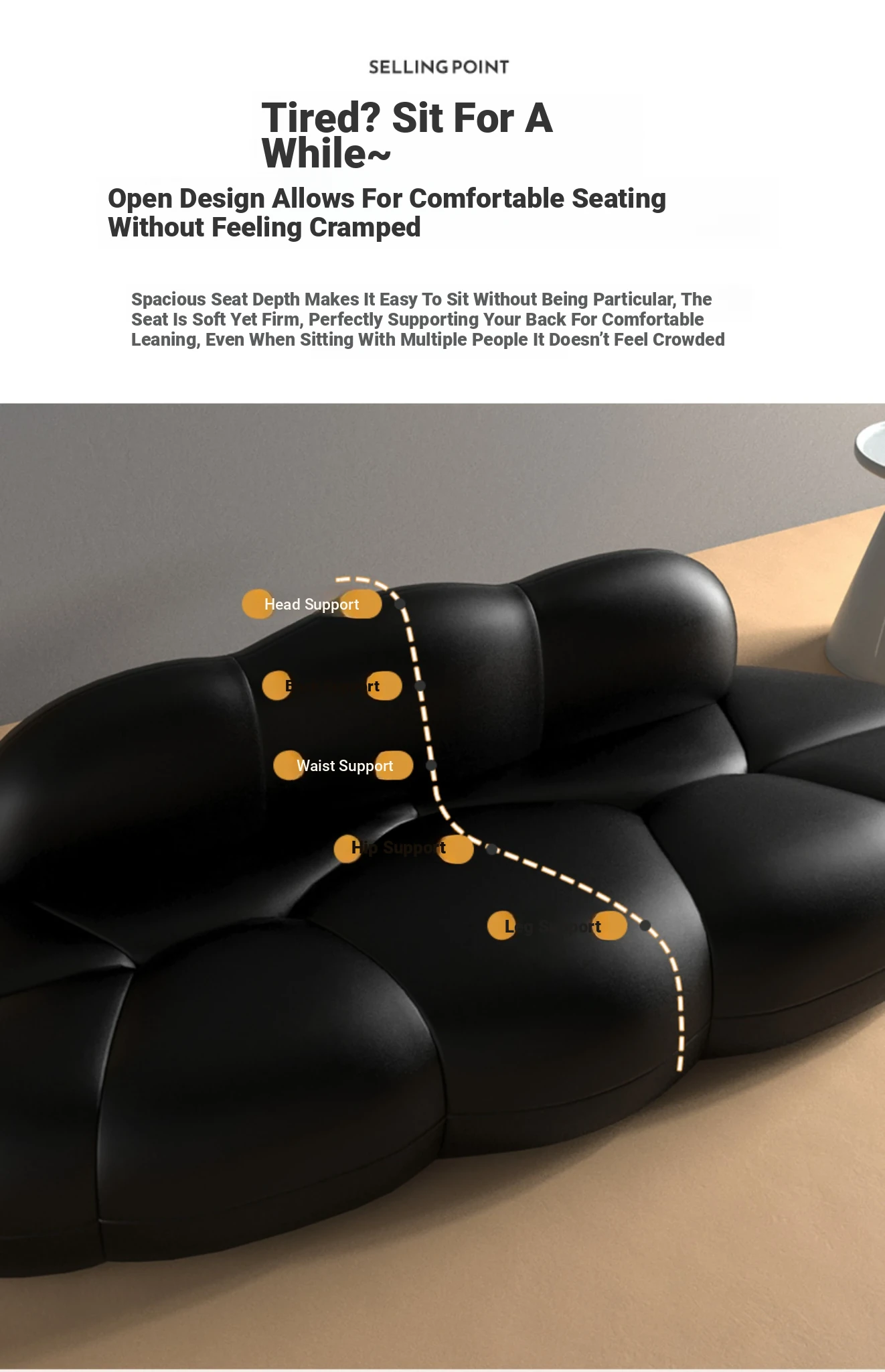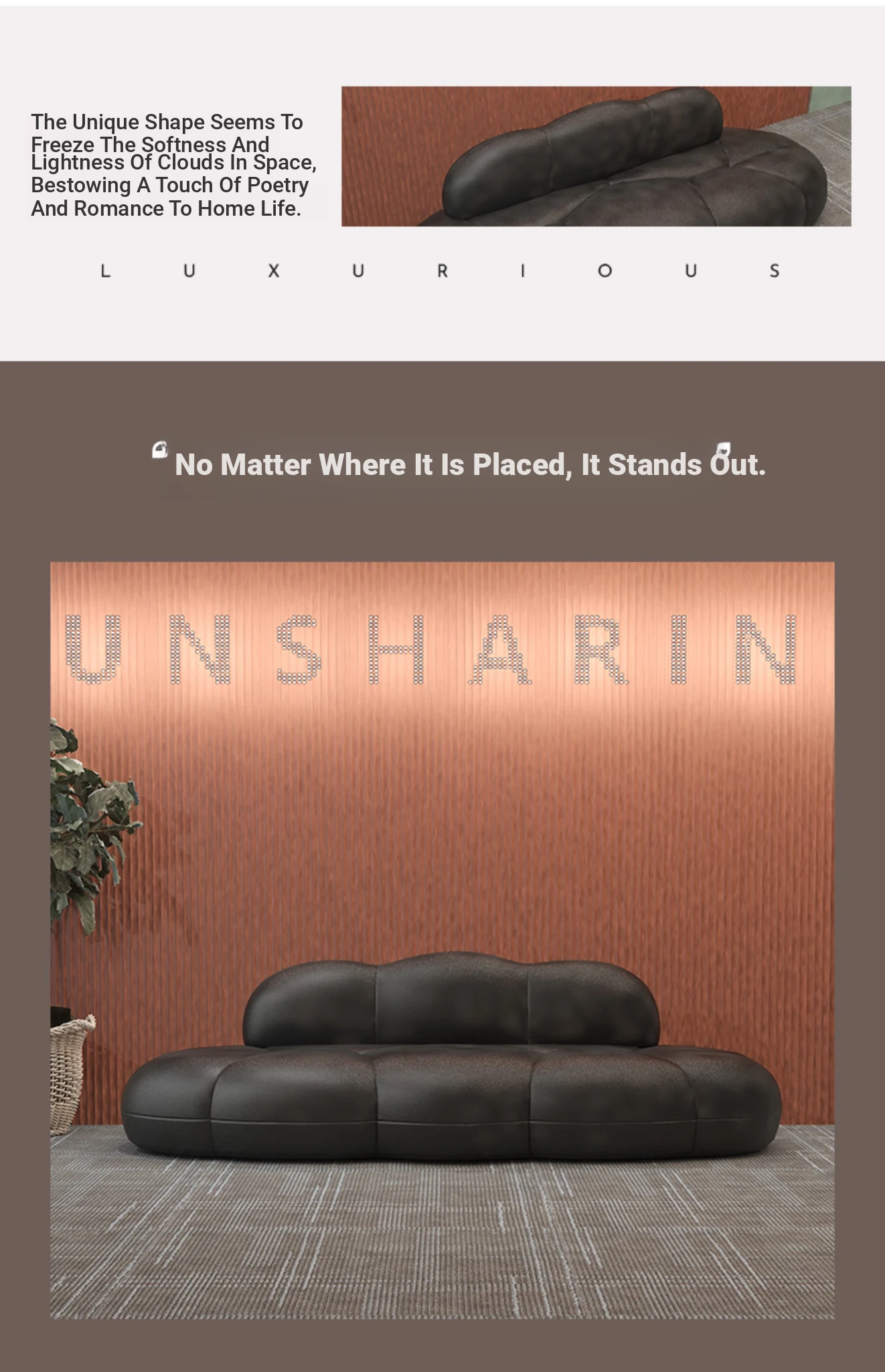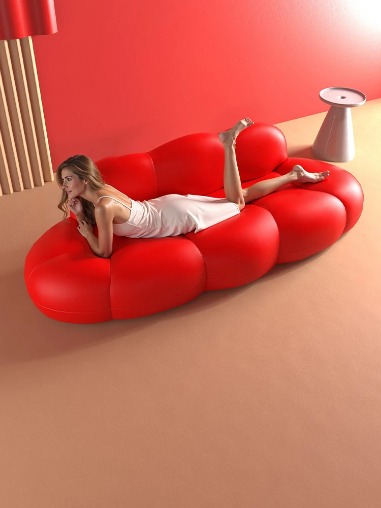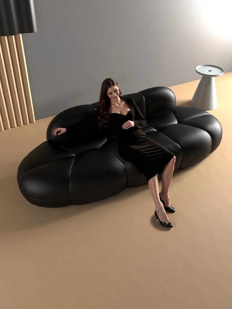 Creative Designer Leather Sofa for Beauty Salons and Clothing Stores - Unique Cloud-Shaped Reception Area Seating for a Trendy Atmosphere