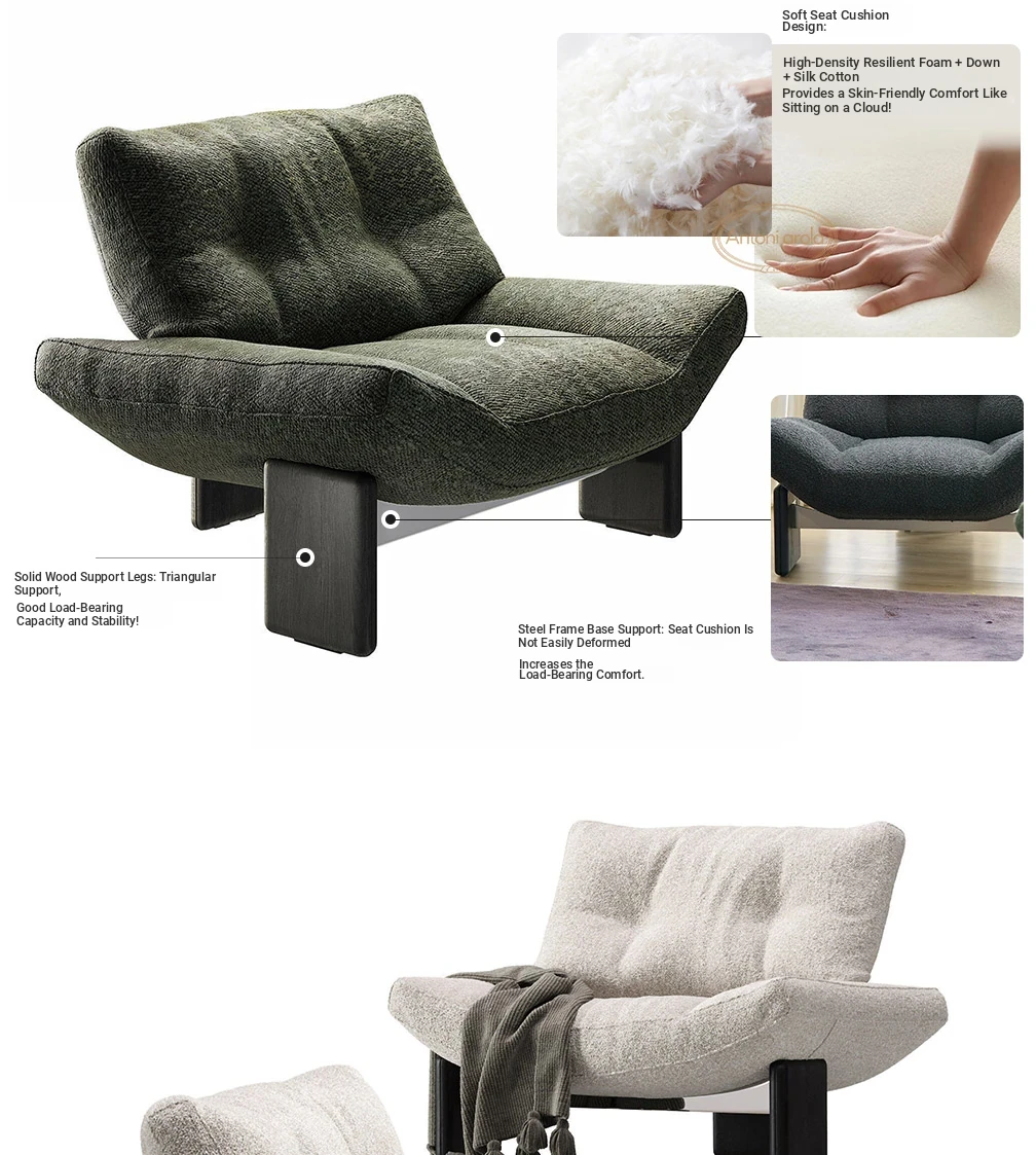 Designer Amy Single Leisure Sofa – Perfect for Villas, Clubs, Living Rooms, and Balconies – Stylish Fabric Lazy Armchair for Home Comfort