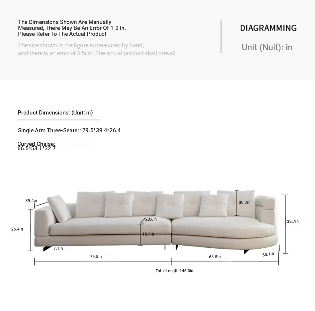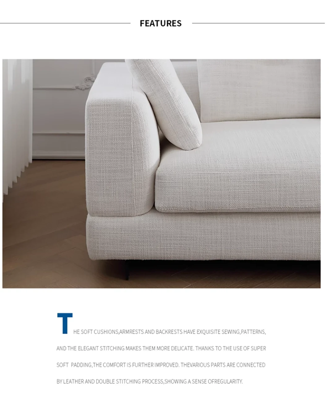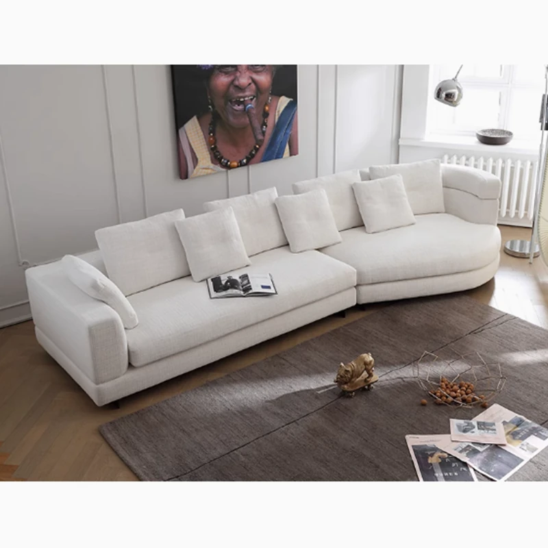 Elegant Italian Fabric Sofa - Designer Cotton-Linen Corner Sectional for Villas, High-End Curved Chaise Lounge Perfect for Luxurious Living Rooms