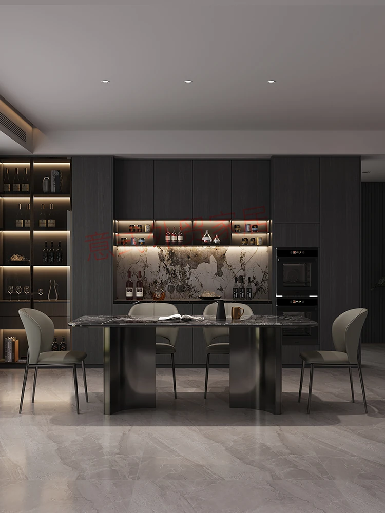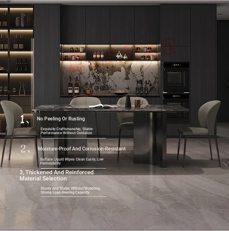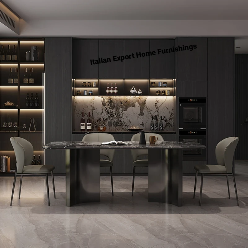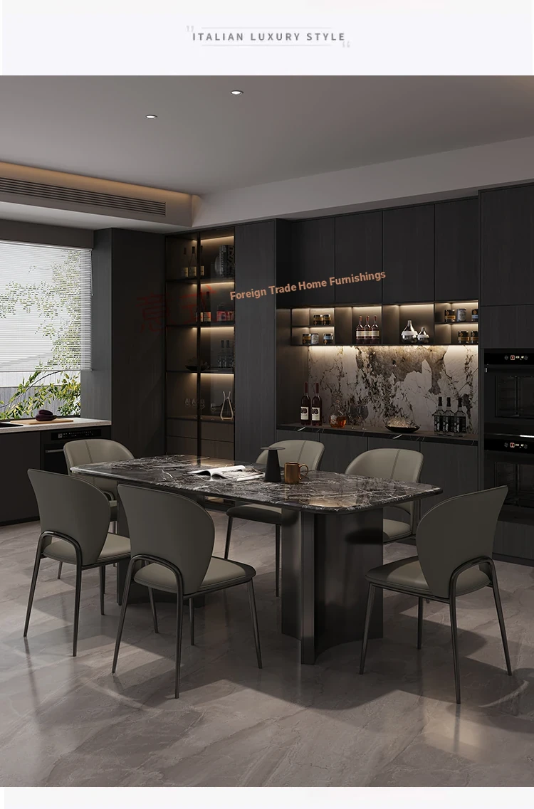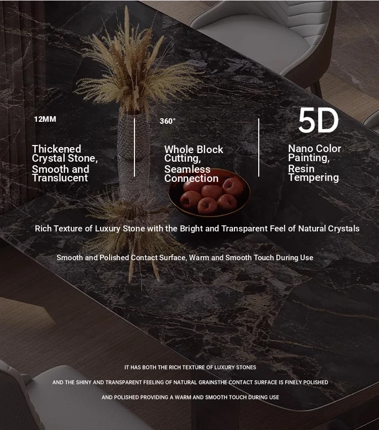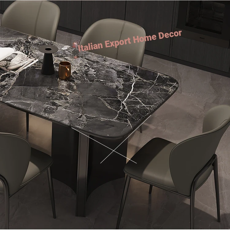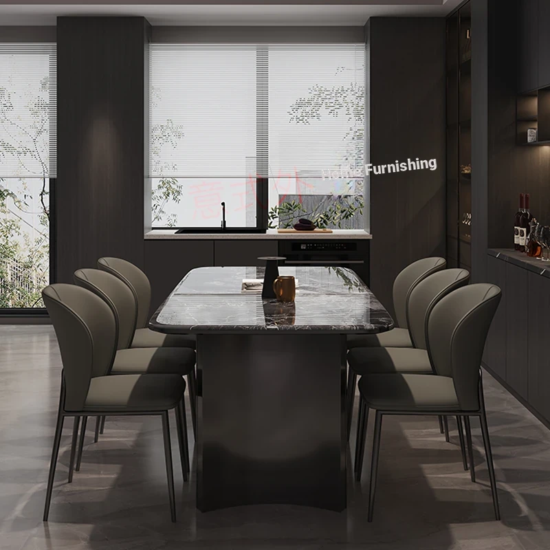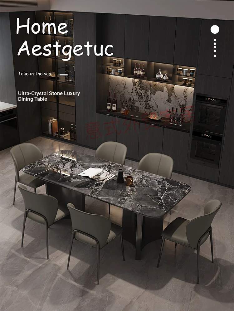 Elegant Marble Dining Table Set with Designer Chairs - Italian Minimalist Modern Ultra-Crystal Stone Dining Furniture for Home