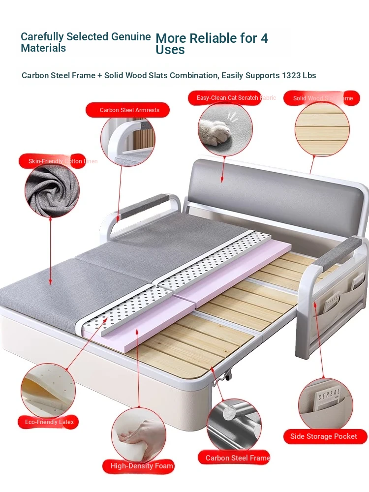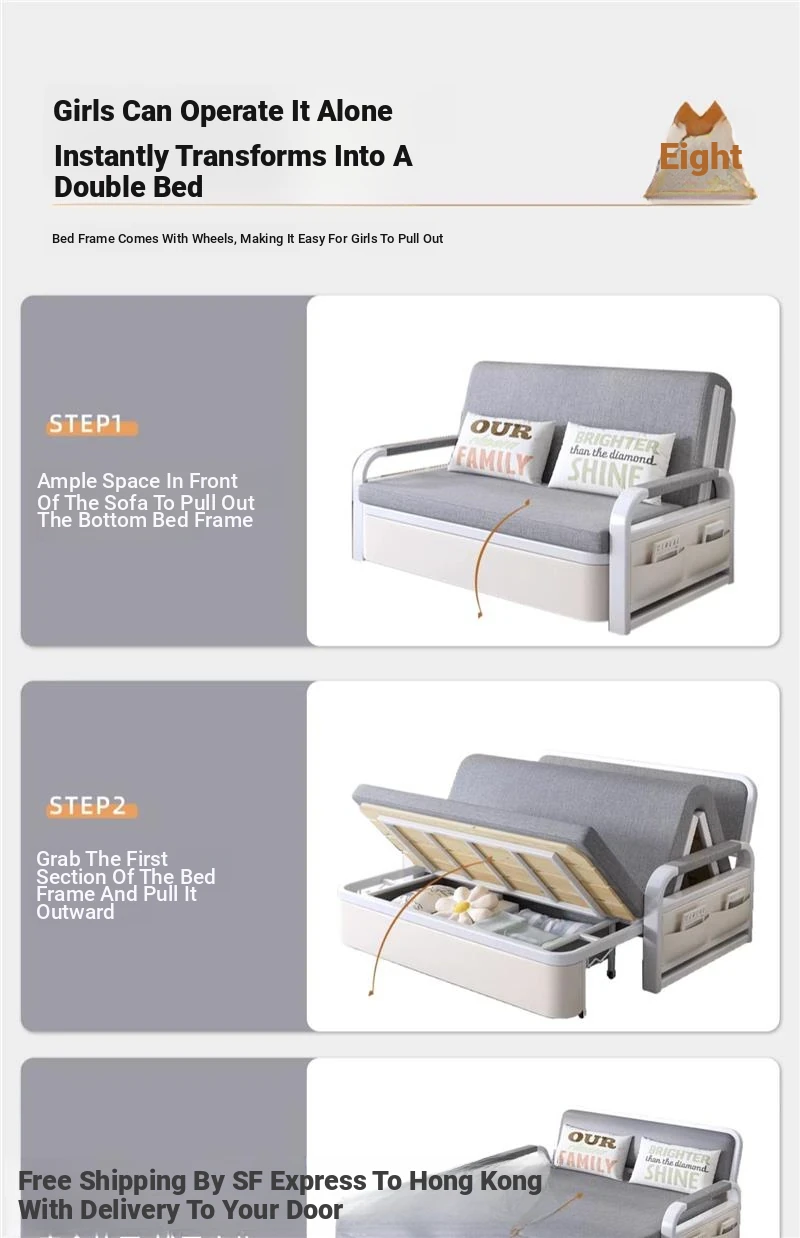 【Free Shipping to Hong Kong】Multipurpose Folding Sofa Bed - Trendy Design for Small Apartments, Ideal for Balconies, Converts from Single to Double Bed!