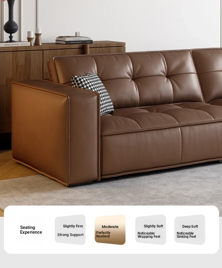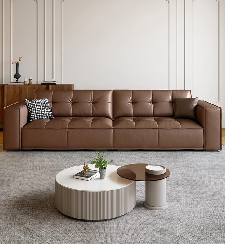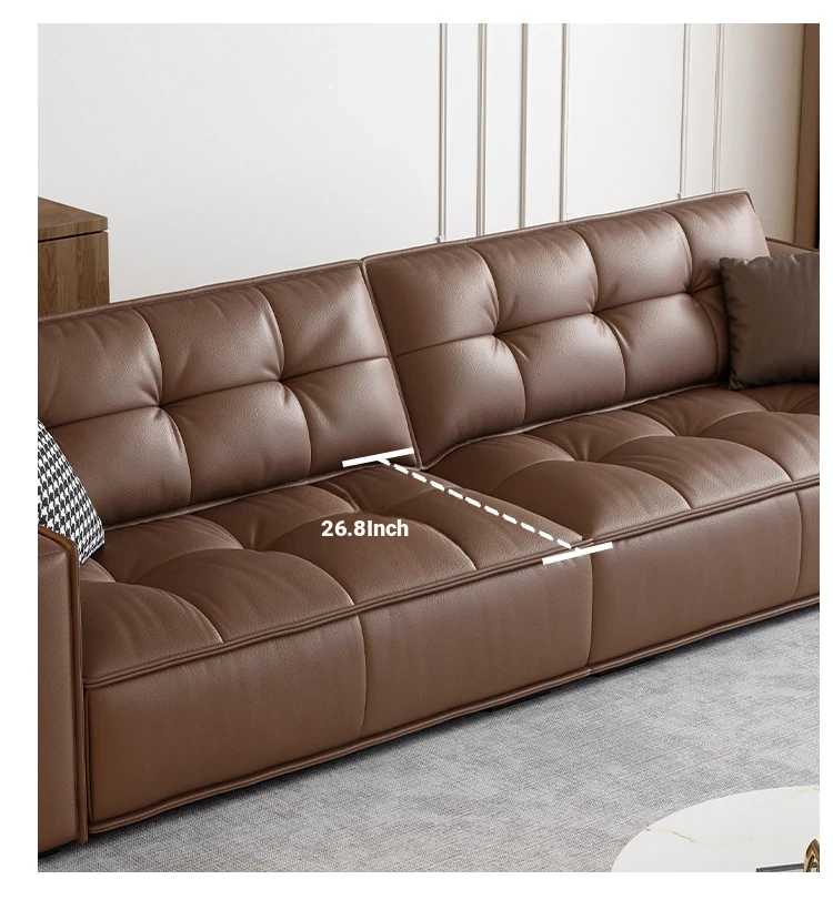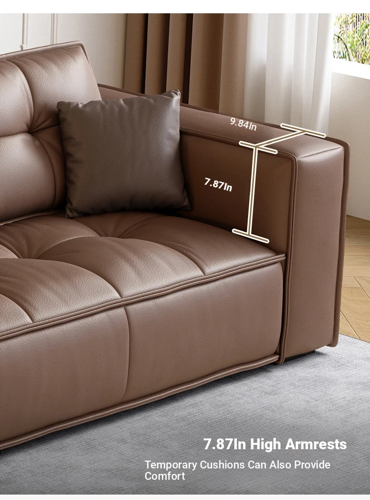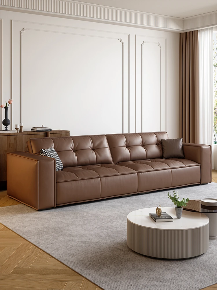 French Retro Tofu Block Genuine Leather Sofa - Italian Minimalist Design for Small Spaces - Cloud Style with Top Grain Leather, Perfect for Modern Living!