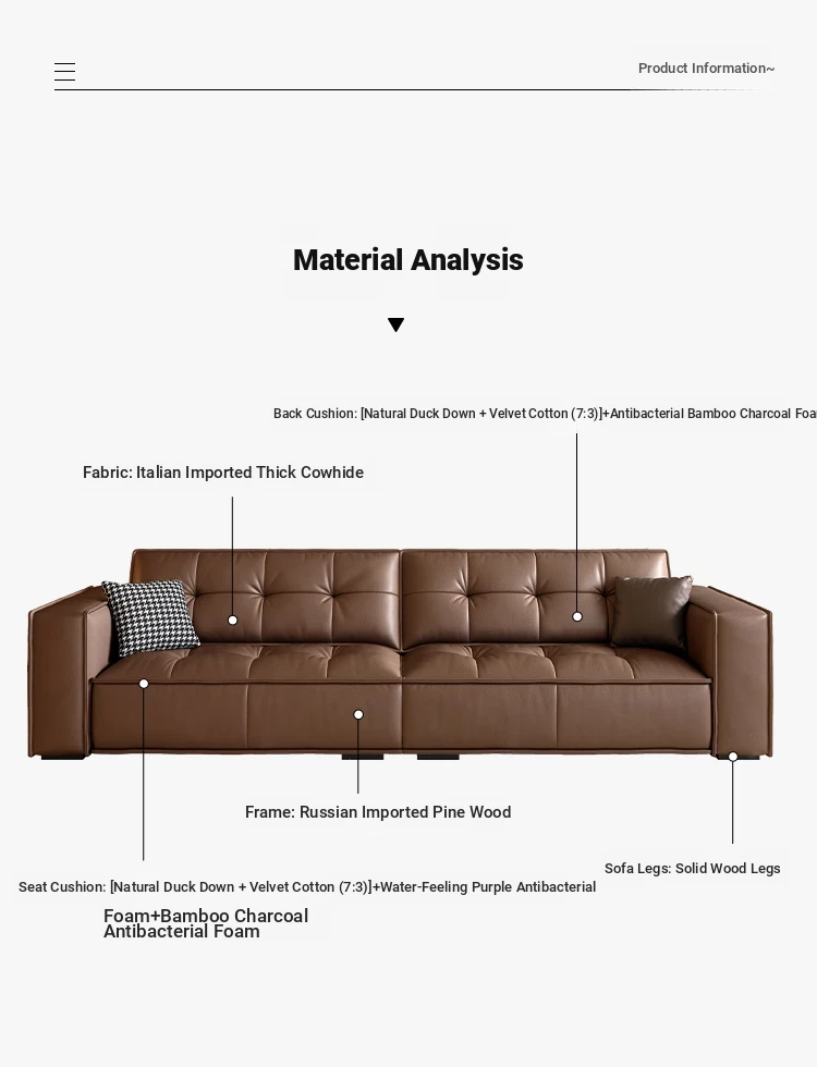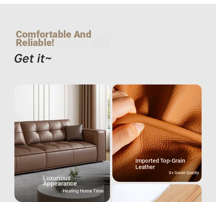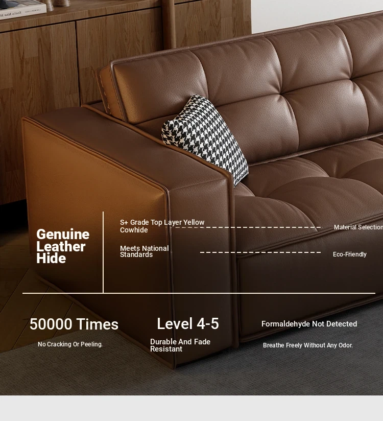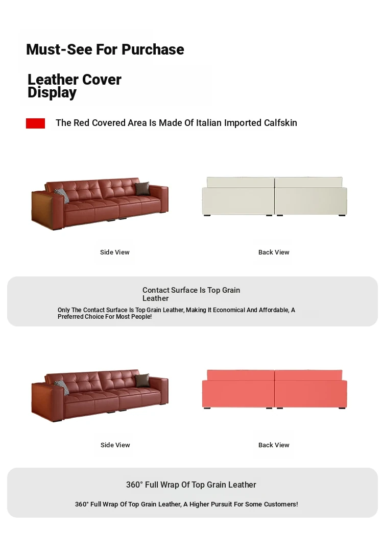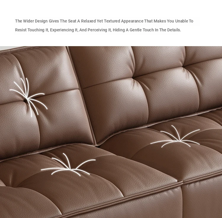French Retro Tofu Block Genuine Leather Sofa - Italian Minimalist Design for Small Spaces - Cloud Style with Top Grain Leather, Perfect for Modern Living!