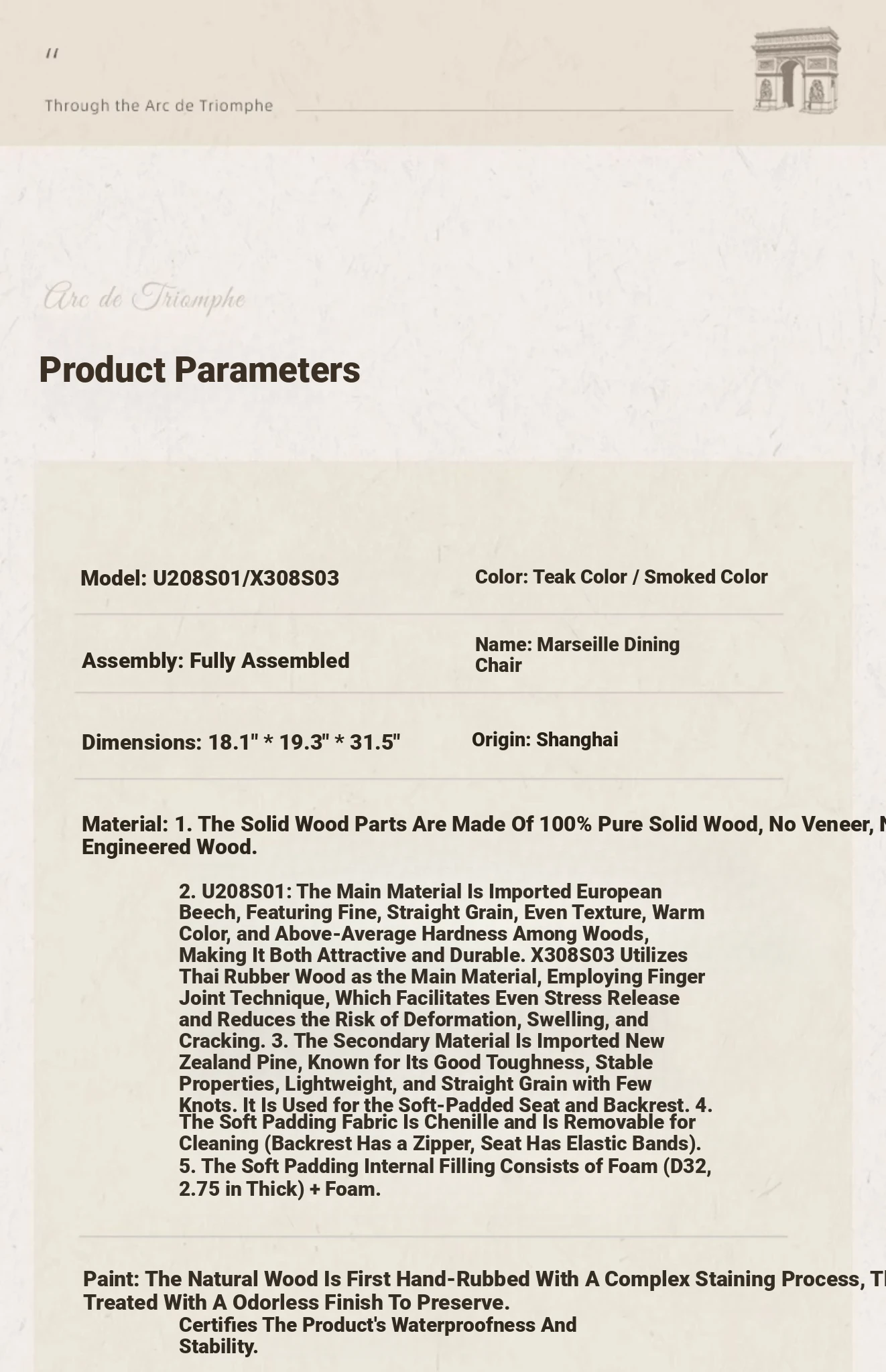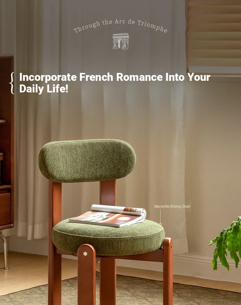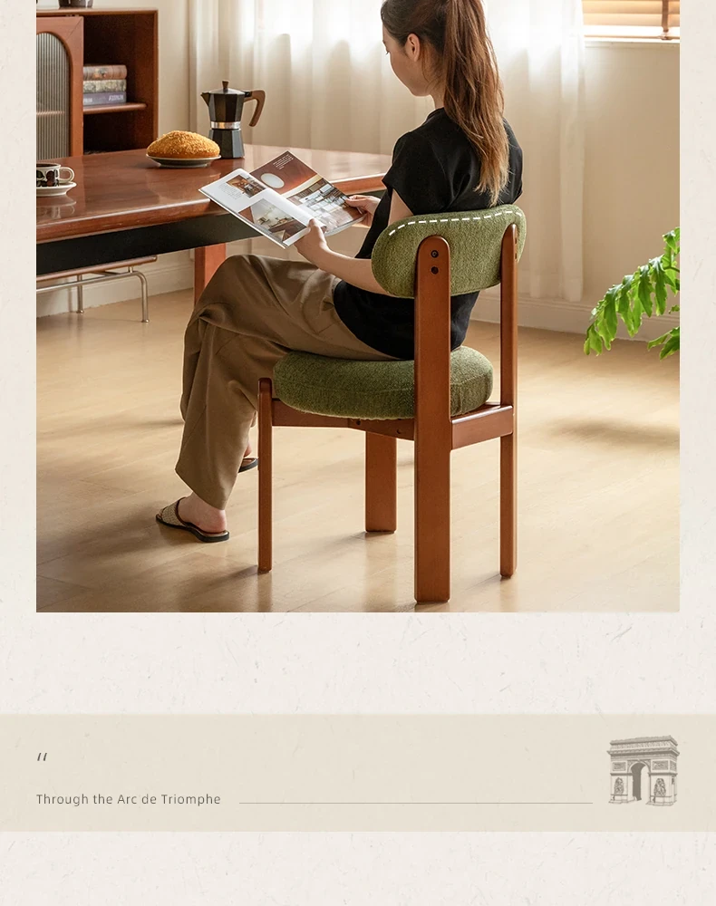 Genji Mokuji Anani Solid Wood Dining Chair - French Vintage Style Restaurant Leisure Chair with Antique Backrest for Dining Table