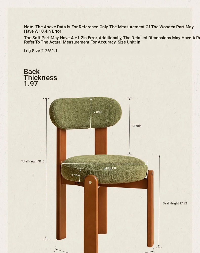 (Beech teak color) 18.11 in dining chair (18.11in*19.29in*31.50in)(cloud Green) U208S01
