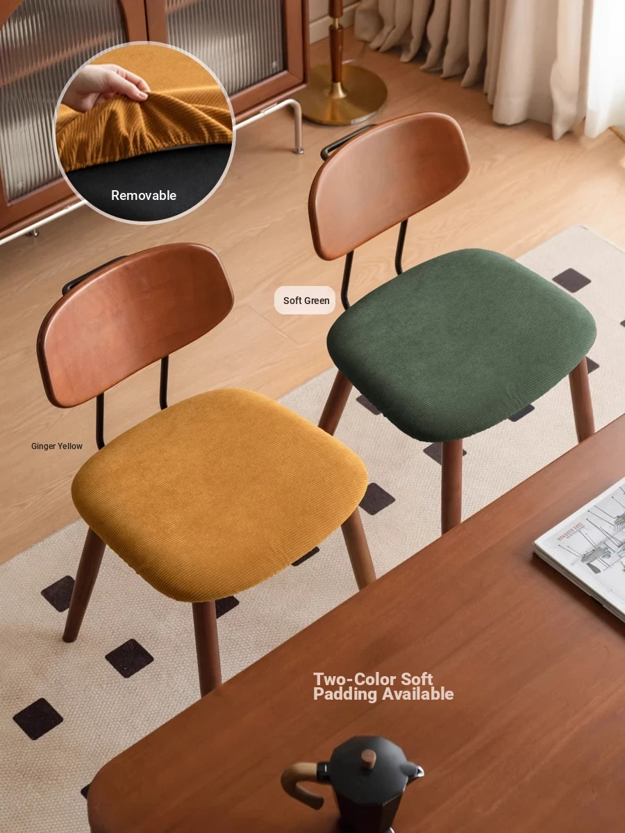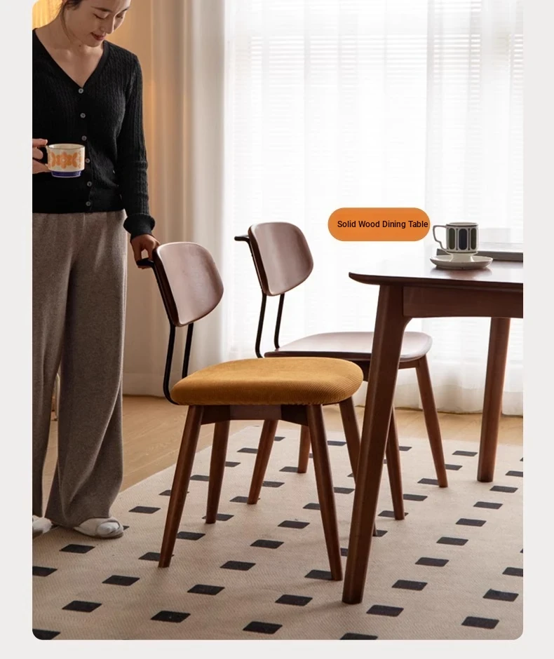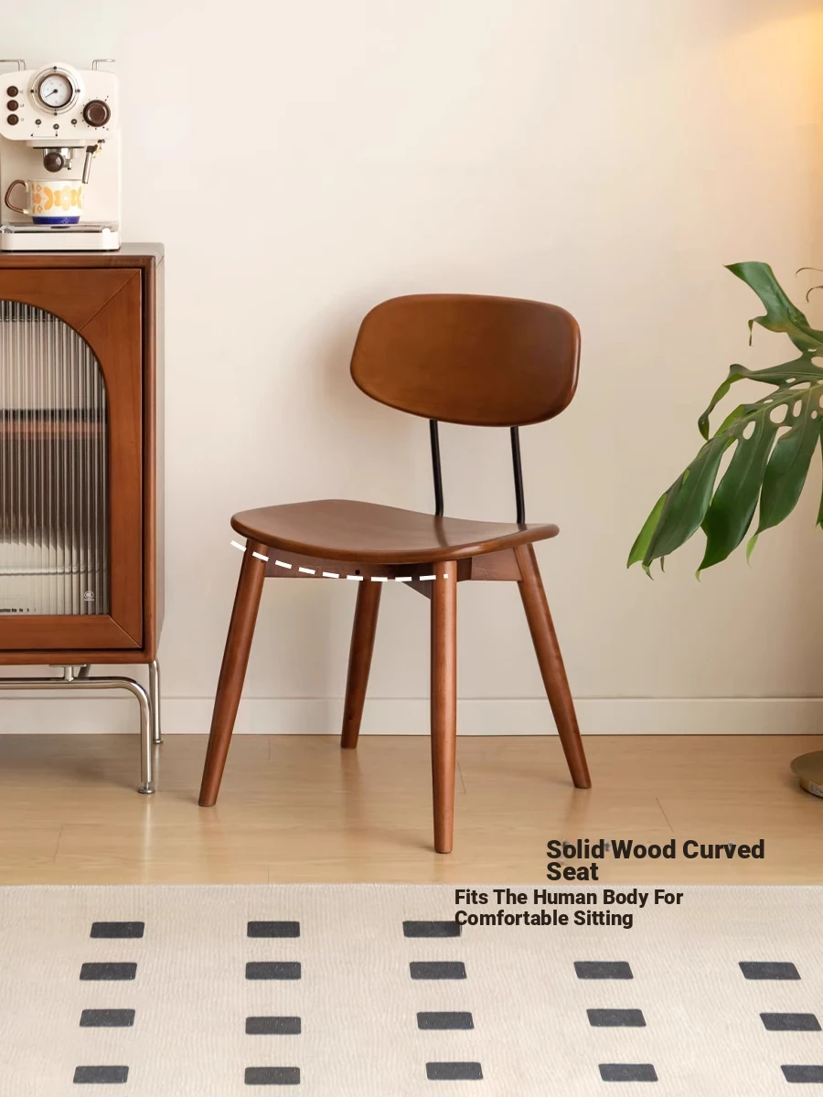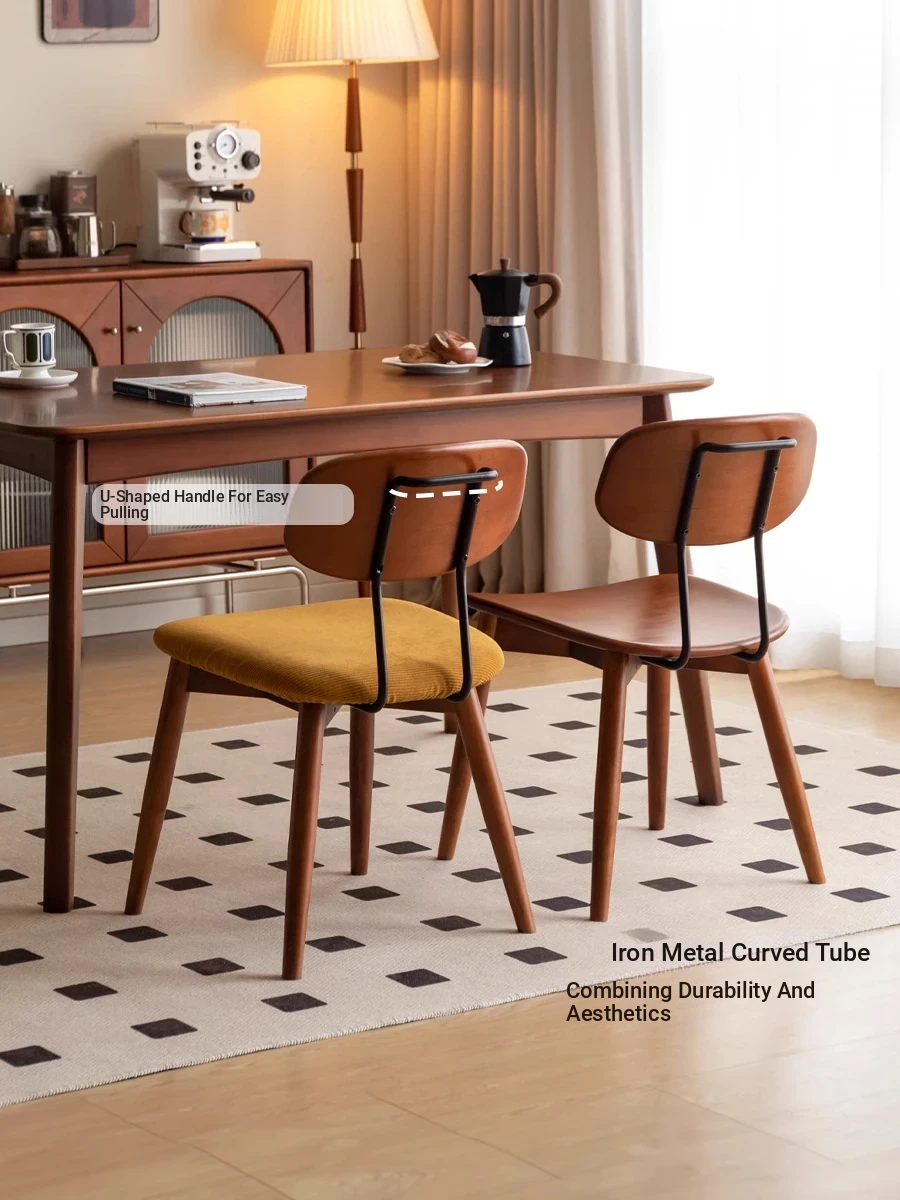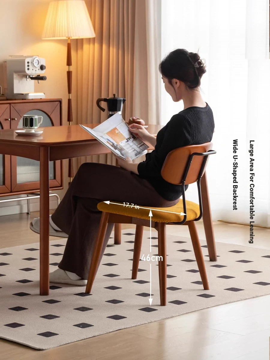 Genji Mu Yu Anani Solid Wood Dining Chair - Vintage Style Upholstered Backrest Chair for Restaurant, Retro Home Leisure Seating